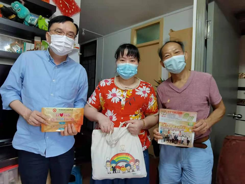 服务业总工会主席唐赓尧、属会牛奶工会荣誉会长张志雄、傢俬红木工会副主席陈爱芳、护卫工会主席麦亿昌、美容工会主席许慧凤、饼业工会理事长黄耀强,分別探访服务行业失业、开工不足的会员工友,为他们送上防疫用品等物资,关心并了解他们的就业生活状况,提供合适的帮助。 工联会理事长黄国今日(6月16日)下午和点心工会理事罗光明到葵涌,一起探访行业困难工友英姐,送上工会的关心和慰问,特別是工会义工亲自包的糉。 工联会副会长李子健医生、服务业总工会理事谭慧华,6月16日亦一起到困难工友李生李太家中探访,了解他们的就业生活状况,送上防疫用品等物资,提供合适的帮助。![]()