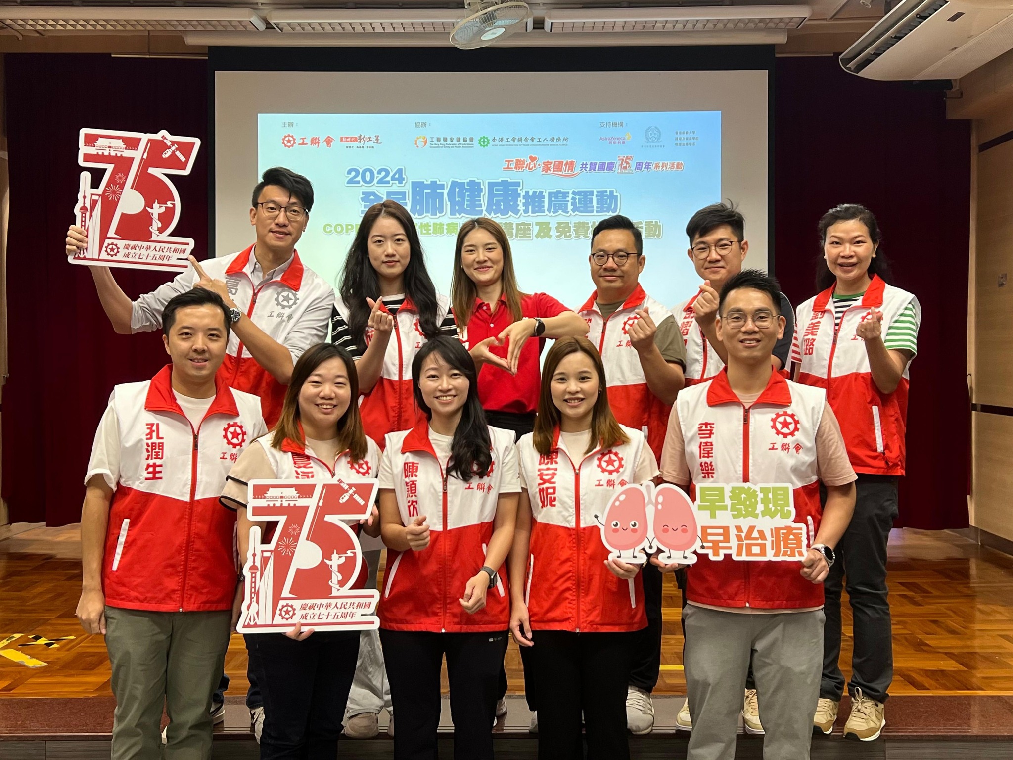 「2024 全民肺健康推广运动」由工联会主办,工联职安健协会、工联会工人医疗所协办,阿斯利康(香港)有限公司、香港物理治疗师协会及香港都会大学护理及健康学院物理治疗学系支持。活动旨在向公众传递关注肺健康的正面信息,希望透过检测,让发现高风险的人士及早得到支援。