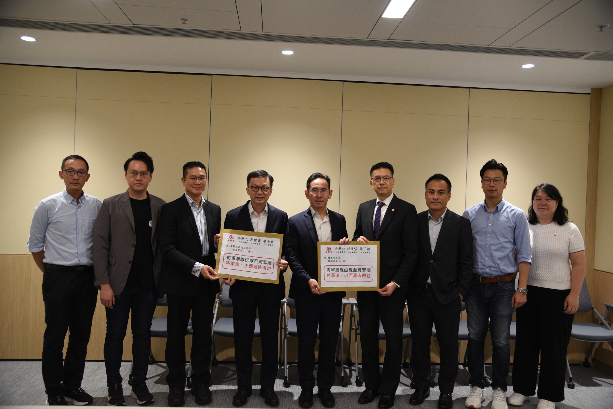 工联会会长、立法会议员吴秋北、立法会议员郭伟强和梁子颖,联同东区区议员何毅淦和吴清清、西贡区议员黄远康和郑宇曦,今日(7月30日)约见运输及物流局和发展局代表,就建议将军澳綫康城段分岔綫拓展至港岛小西湾及筲箕湾提交建议及进行交流。