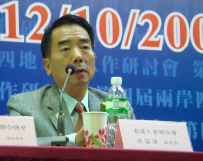 梁富华(见右图)发言时指出,随着经济结构转变,香港制造业式微,本港出现大量低学歷、低技术的中年劳工难以就业,社会贫富差距继续恶化,僱员亦受到合约制、低薪酬、散工化的逼迫。同时香港劳动人口以文职、白领为主,港人北上跨境工作成新趋势,凡此种种对僱员、工联会及其他香港工会属新挑战。工联会因应状况作出大量工作: