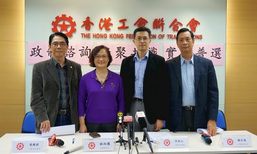 就政府於上星期发表题为《有商有量 实现普选》的政制发展谘询文件,工联会今日(12月10日)下午举行记者会,公佈开展谘询工会及会员的工作计劃,向政府递交政制发展方案,为实现2017年普选行政长官而努力。
