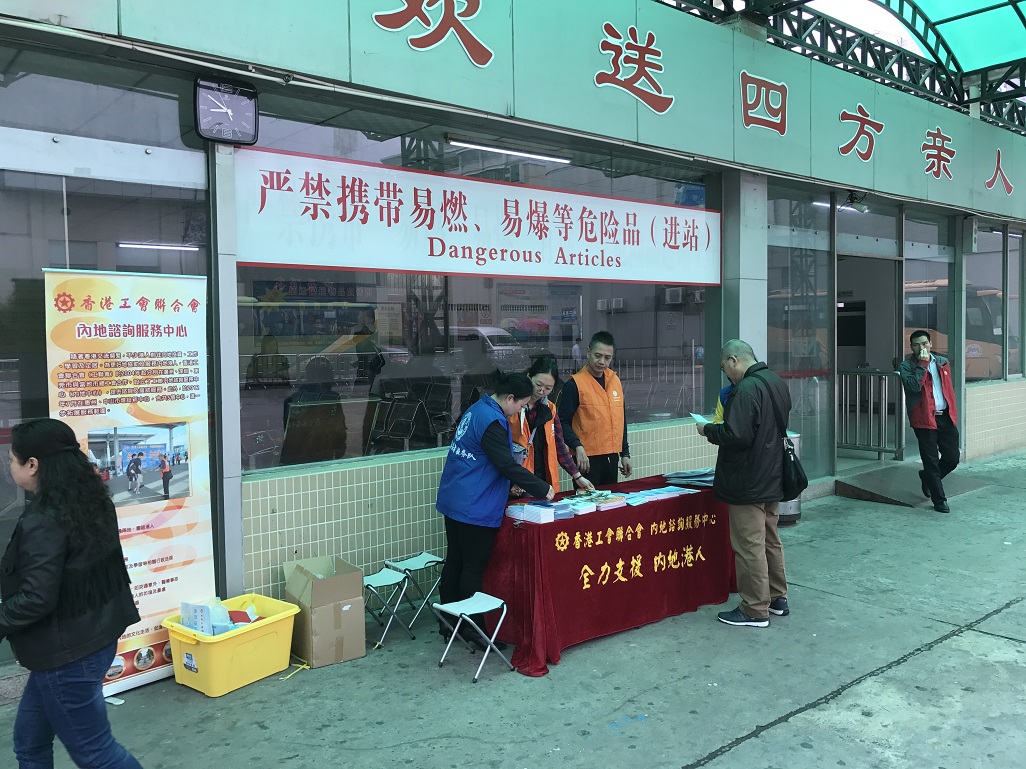 4月1日,惠州中心在汕头市总工会的帮助下,以及汕头国际海员俱乐部多名志愿者的协助下,首先在有直达香港巴士的客运站旁,派发宣传资料。当途经的港人得悉工联会在内地开设谘询服务中心为港人服务时,纷纷主动上前索取相关资料,并谘询惠州中心的服务内容。