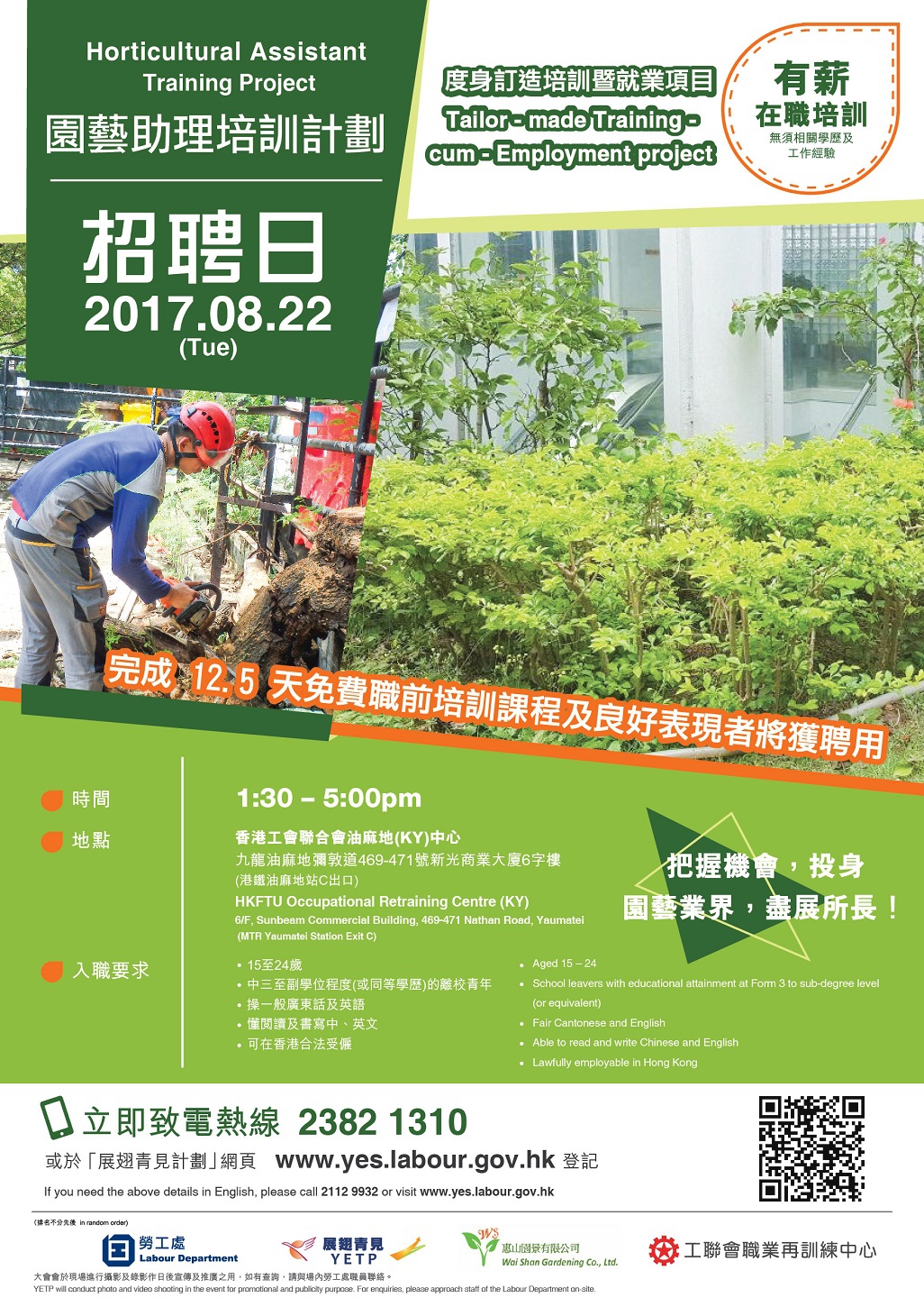 园艺助理培训计劃招聘日