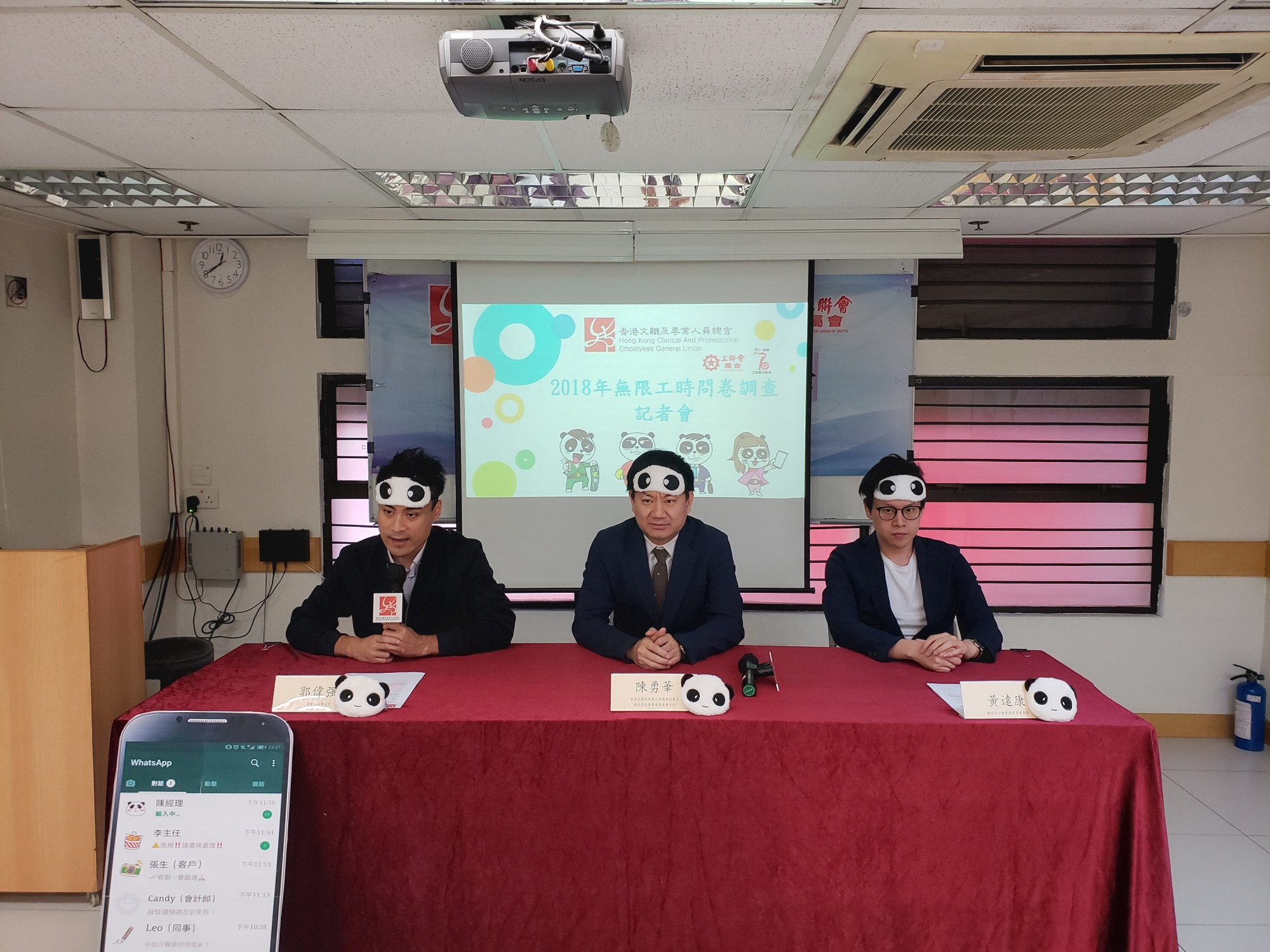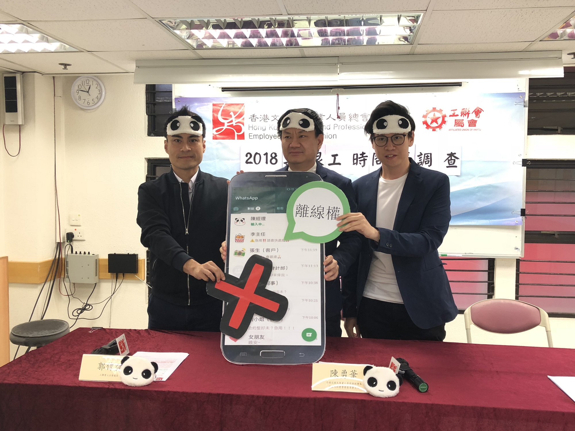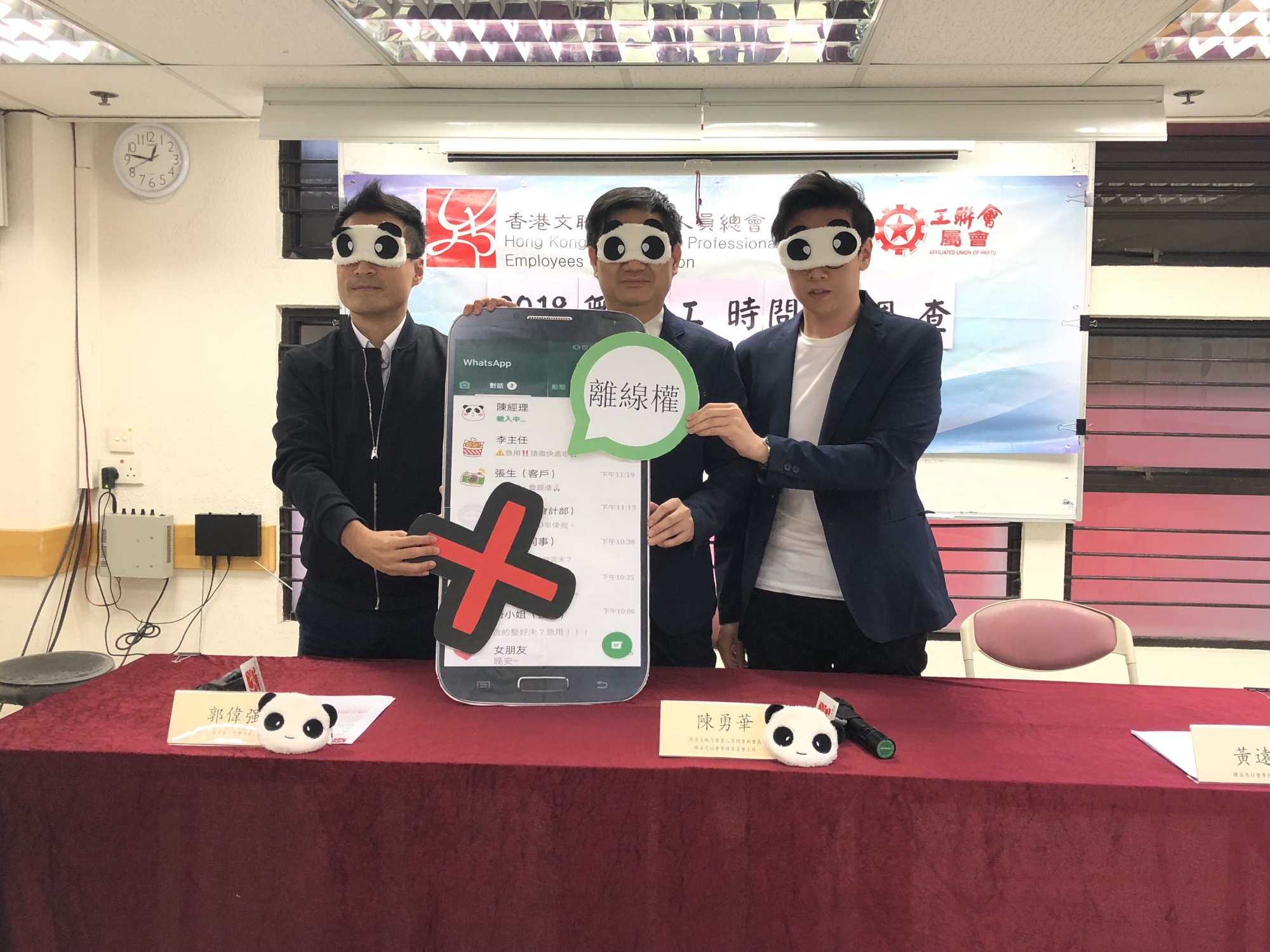 随着通讯科技发达,愈来愈难分辨工作和工馀时间,即使立法订立标準工时,一众「职场熊猫」辛勤工作回家後,上司仍可经电邮、短讯安排员工工作。因此,香港文职及专业人员总会(下称文专总)於2018年10月进行「无限工时问卷调查」,以收集各「职场熊猫」在工馀时间使用即时通讯软件情况和意见,以便工会作出政策倡议。