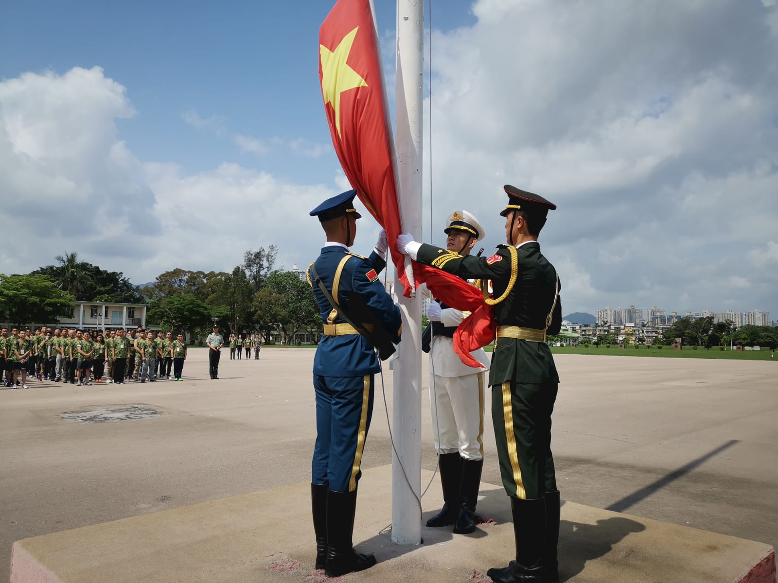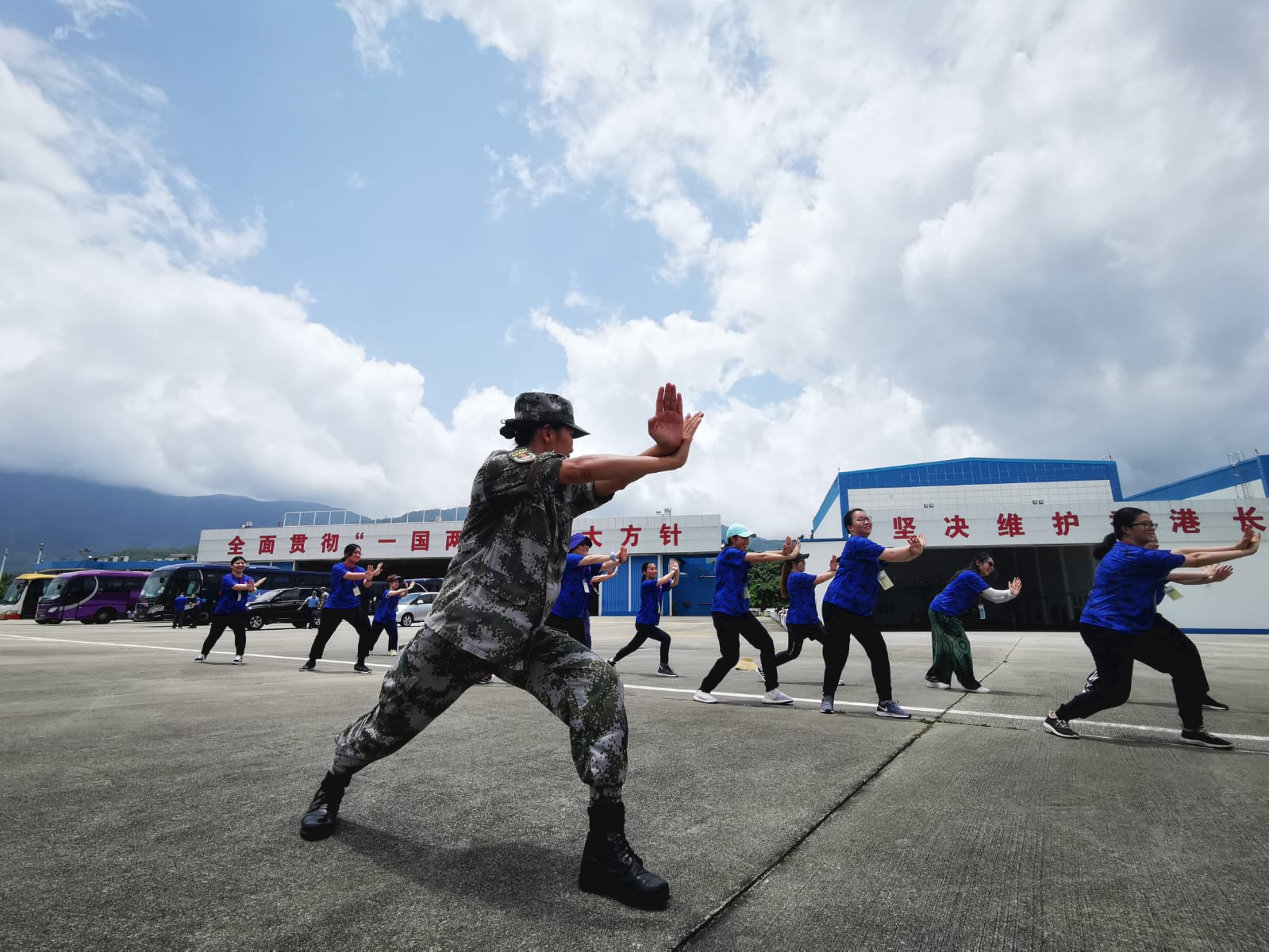 工联会理事长黄国表示,为庆祝中华人民共和国成立70周年,军方批准工联会首次组织青年义工参加军事生活体验营,对军方的支持及驻港部队的帮忙,表示衷心的感谢。他表示,在今年国庆70周年大日子下,进行军事生活体验营别具意义,相信参加活动的青年人明白到解放军是一支威武文明之师,而驻港部队是维护「一国两制」和香港安定繁荣的强劲後盾。