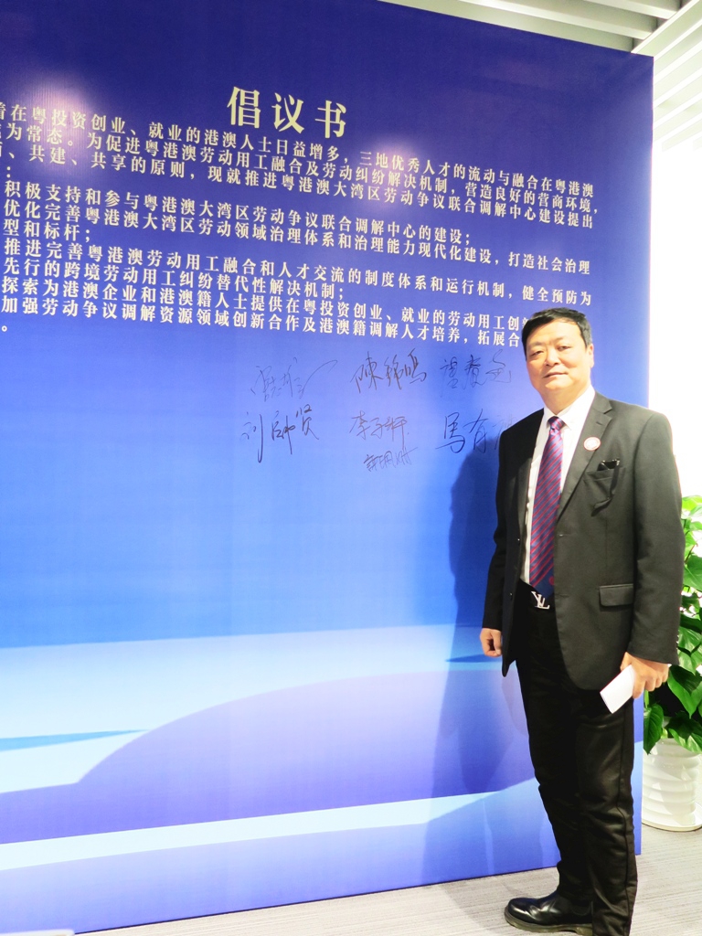 在国家人力资源社会保障部及广东省人力资源社会保障厅指导下,粤港澳大湾区劳动争议联合调解中心暨珠海服务站今天(12月10日)在珠海中心大厦29楼挂牌成立。国家人社部调解仲裁管理司王振麒副司长、广东省人力资源社会保障厅李新全副厅长、珠海市人民政府阎武副市长、中共珠海市委台港澳办邹桦主任;香港中联办社工部彭建新副巡视员、香港特别行政区劳工就业服务处何锦标助理处长;澳门中联办黄华盖副秘书长、澳门特别行政区劳工事务局陈元童副局长等领导、香港工会联合会副会长唐赓尧、珠海市总工会李亦根常务副主席、澳门工会联合总会陈锦鸣会长等主持揭牌仪式,粤港澳企业的负责人近100人出席了仪式。 国家人社部调解仲裁管理司副司长王振麒致辞时表示,联调中心目标旨在就地化解矛盾、加强预防争议,会同工会及企业组织,共同做好工作,用法治思维和法治方式预防和化解社会矛盾。他并指出,企业兴则经济兴、职工稳则社会稳,在这两者基础上企业发展是前提,有企业才有职工的收入和社保。 广东省人力资源社会保障厅副厅长李新全致辞时表示,促进粤港澳劳动用工融合,公平而高效地处理劳动用工纠纷,营造湾区一流的营商环境,和谐稳定的用工环境,对建设世界一流湾区具有重要的现实和长远意义。联调中心由三地调解组织联合组成,立足广东,面向港澳企业和港澳劳动者,提供劳动争议调解服务。 香港特别行政区劳工就业服务处助理处长何锦标致辞时指出,在推进发展大湾区发展的过程中,联合调解中心将肩负重任,为企业及劳动者提供全面、优质的资源和服务。湾区联调中心主张预防为先、调解先行,正是解决劳动争议的良方,香港劳工处一直採取多管齐下的措施,致力构建和谐的劳资关係。 随着在粤投资创业、就业的港澳人士日益增多,三地优秀人才流动和融合成为常态。为促进粤港澳劳动用工融合及劳动纠纷解决机制,营造良好的营商环境,本着共商、共建、共享的原则,三地劳动部门就粤港澳大湾区劳动争议联合调解中心建设提出以下倡议: 一、积极支持和参与粤港澳大湾区劳动争议联合调解中心的建设; 二、优化完善粤港澳大湾区劳动领域治理体系和治理能力现代化,打造社会治理创新的典型和标杆; 三、推进完善粤港澳大湾区劳动用功融合和人才交流的制度体系和运行机制,健全预防为先、调解先行的跨境劳动用工纠纷替代性解决机制; 四、探索为港澳企业和港澳籍人士提供在粤投资创业、就业的劳动用工创新服务模式; 五、加强劳动争议调解资源领域创新合作及港澳籍调解人才培养,拓展合作、丰富文化交流。 香港工业总会珠三角工业协会分部副主席唐志雄、香港工会联合会副会长唐赓尧、澳门中华总商会会长马有礼、澳门工会联合总会会长陈锦鸣、国际争议解决及风险管理协会知识产权委员会主任刘帅贤、香港和解中心高级行政主任李子轩等粤港澳社会组织和调解组织等机构代表签署了倡议书。 联调中心旨在促进粤港澳大湾区劳动用工融合及人才交流,创新湾区劳动争议解决机制,搭建劳动争议协同治理创新服务平台,构建粤港澳大湾区和谐劳动关係。粤港澳相关部门和组织通过这个平台凝聚共识,接下来将与各方面研究探讨,建立服务机制。