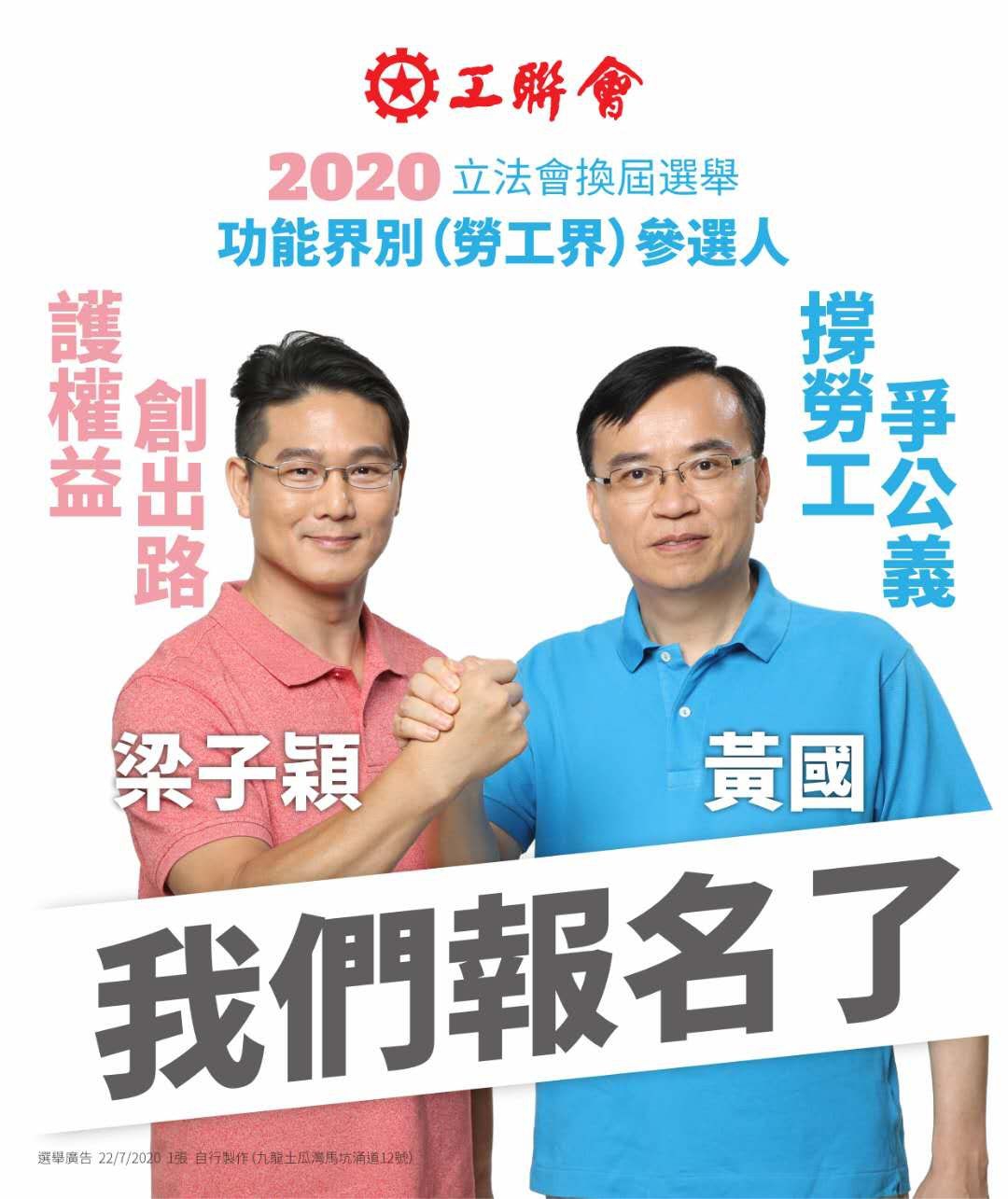 2020-07-22 黄国 梁子颖 递表参加2020立法会劳工界选举