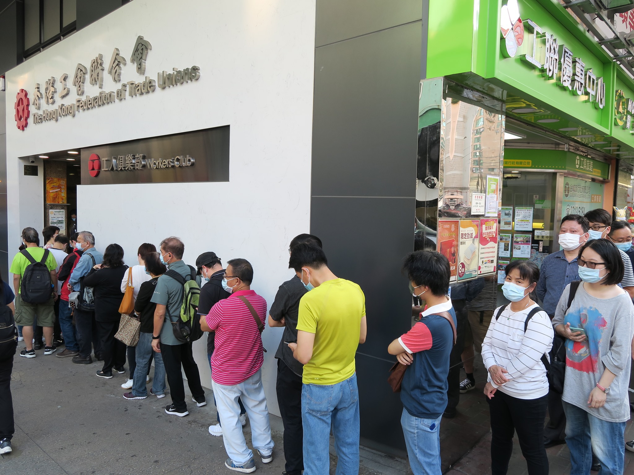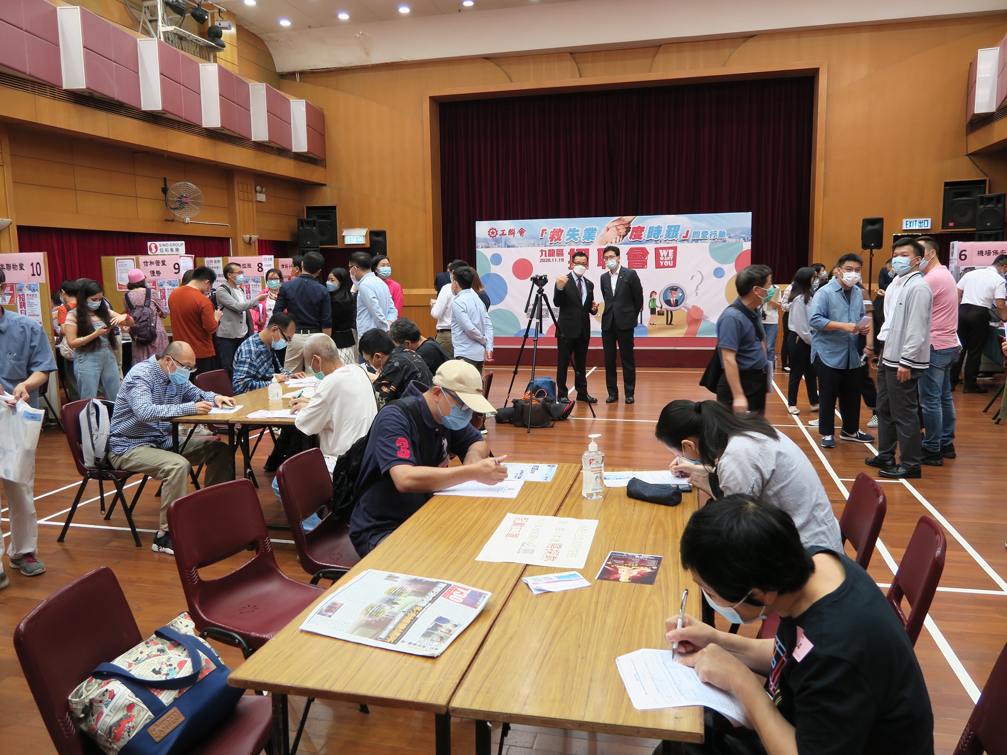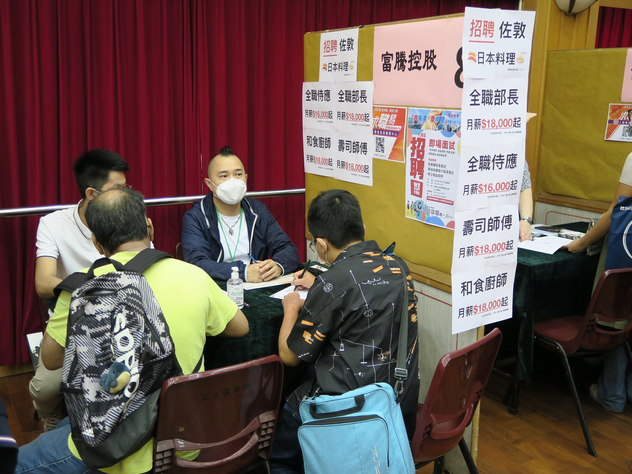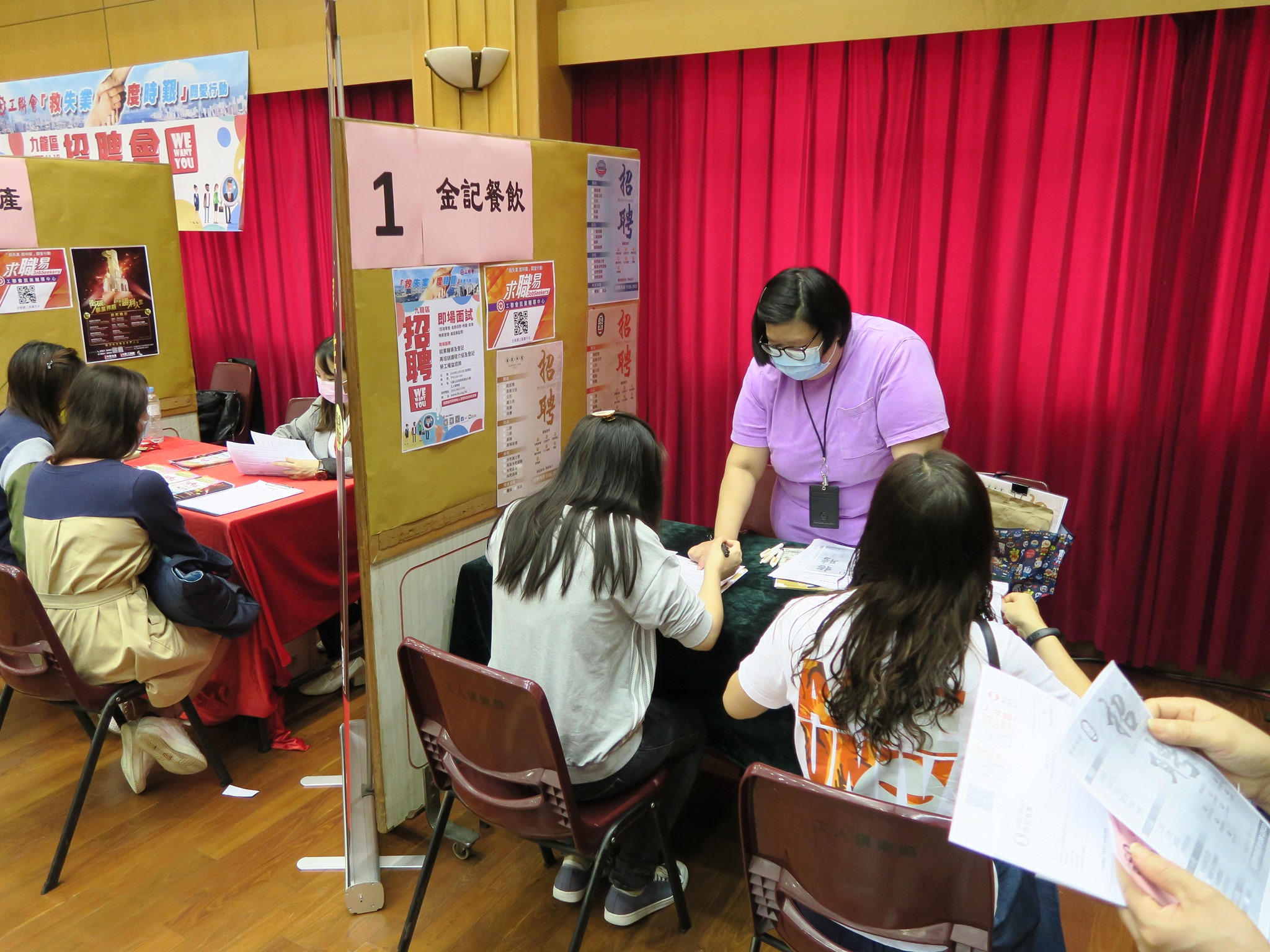 疫情之下,失业问题愈趋严重,香港工会联合会(工联会)发起「救失业 度时艰」关爱行动,在九龙、港岛及新界举行招聘会。九龙区招聘会今日(19日)率先土瓜湾工人俱乐部举行,10多间机构和企业提供逾1000个职位空缺供市民申请。