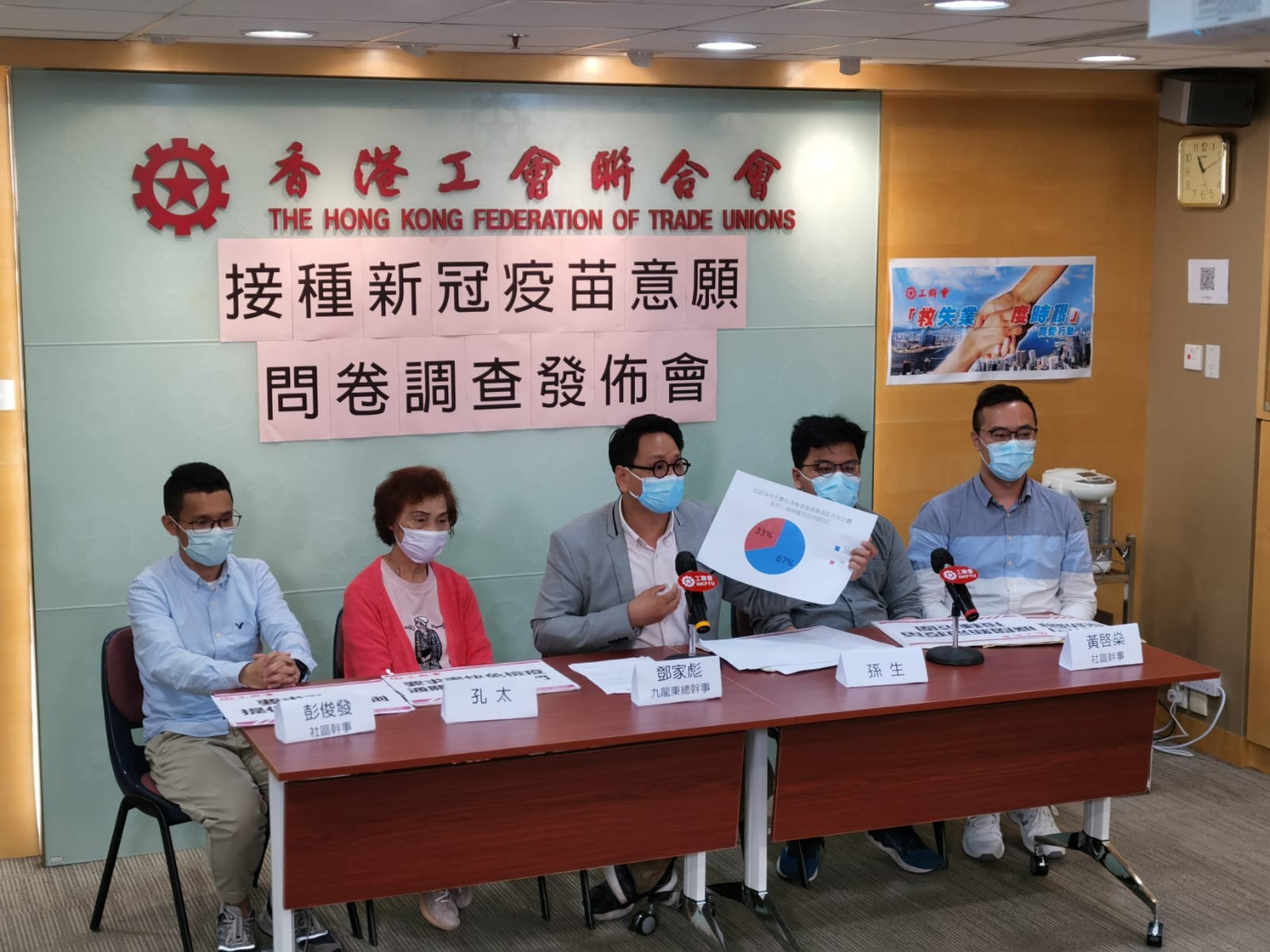 新冠疫情持续肆虐,影响市民健康及本港经济。本港的疫苗接种计划于二月二十六日正式展开,并于三月十五日放宽至30岁至59岁人士可接种疫苗,唯接种率一直未达政府预期,未能建立免疫屏障。工联会九龙东团队为了解市民对于接种疫苗的最新看法,于3月30发起问卷调查,收集了超过700份问卷,并于4月8日公佈调查结果。 邓家彪有五项建议,第一,政府应尽快增设前往内地、澳门免检疫通关;第二,政府可研究由医疗或相关合资格机构提供血清检测服务,让完成接种的市民检测是否有抗体;第三,建议当局容许已完成接种的市民可去医院、院舍等探访亲人,让市民尽快回復正常生活;第四,政府应透过第599章《预防及控制疾病规例》立法保障全港僱员,让前往注射疫苗的僱员当日可有一天有薪假期;第五,儘快扩阔接种范围,建立免疫屏障。