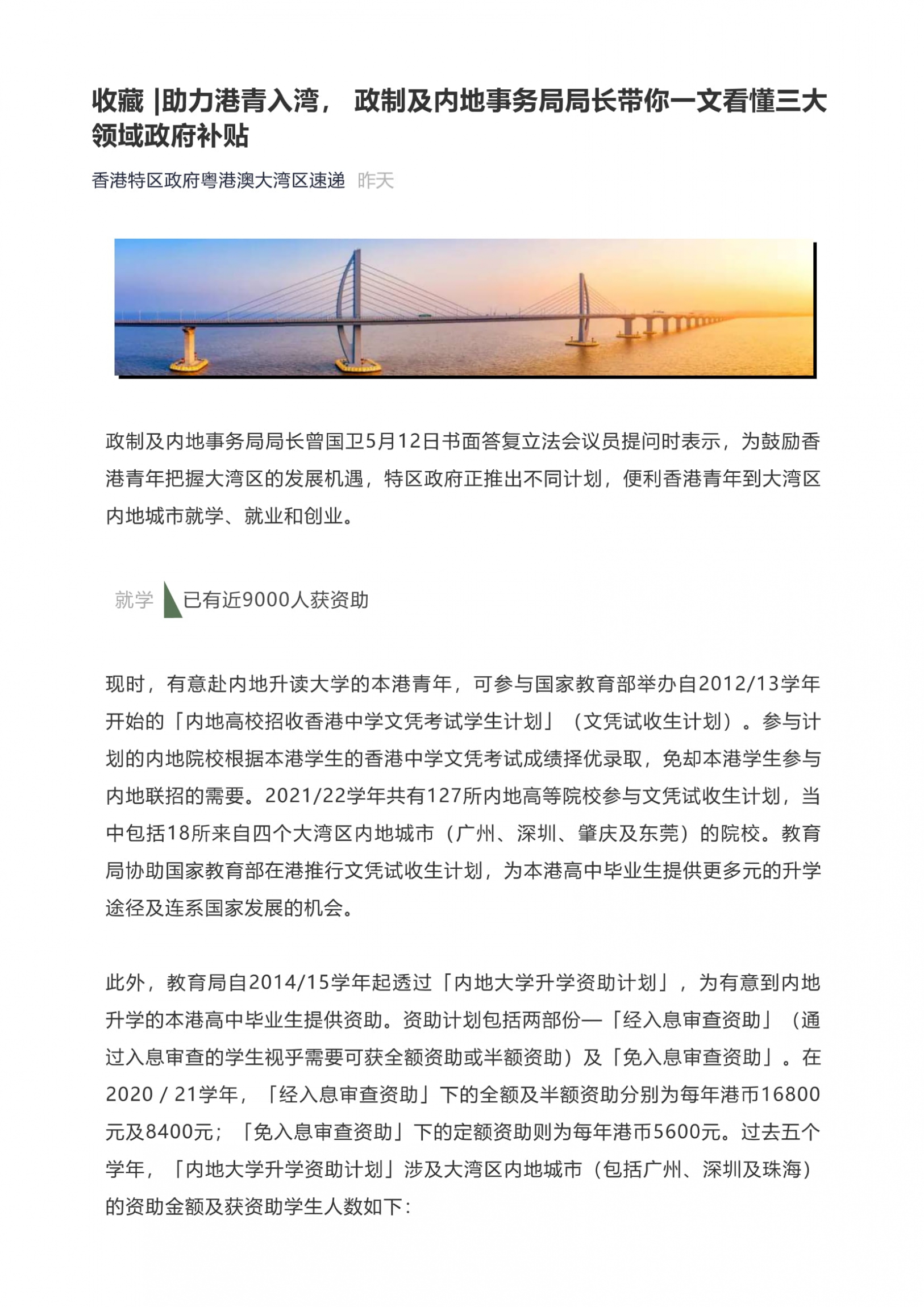 【湾区动态】助力港青入湾区,一文看懂三大领域政府补贴