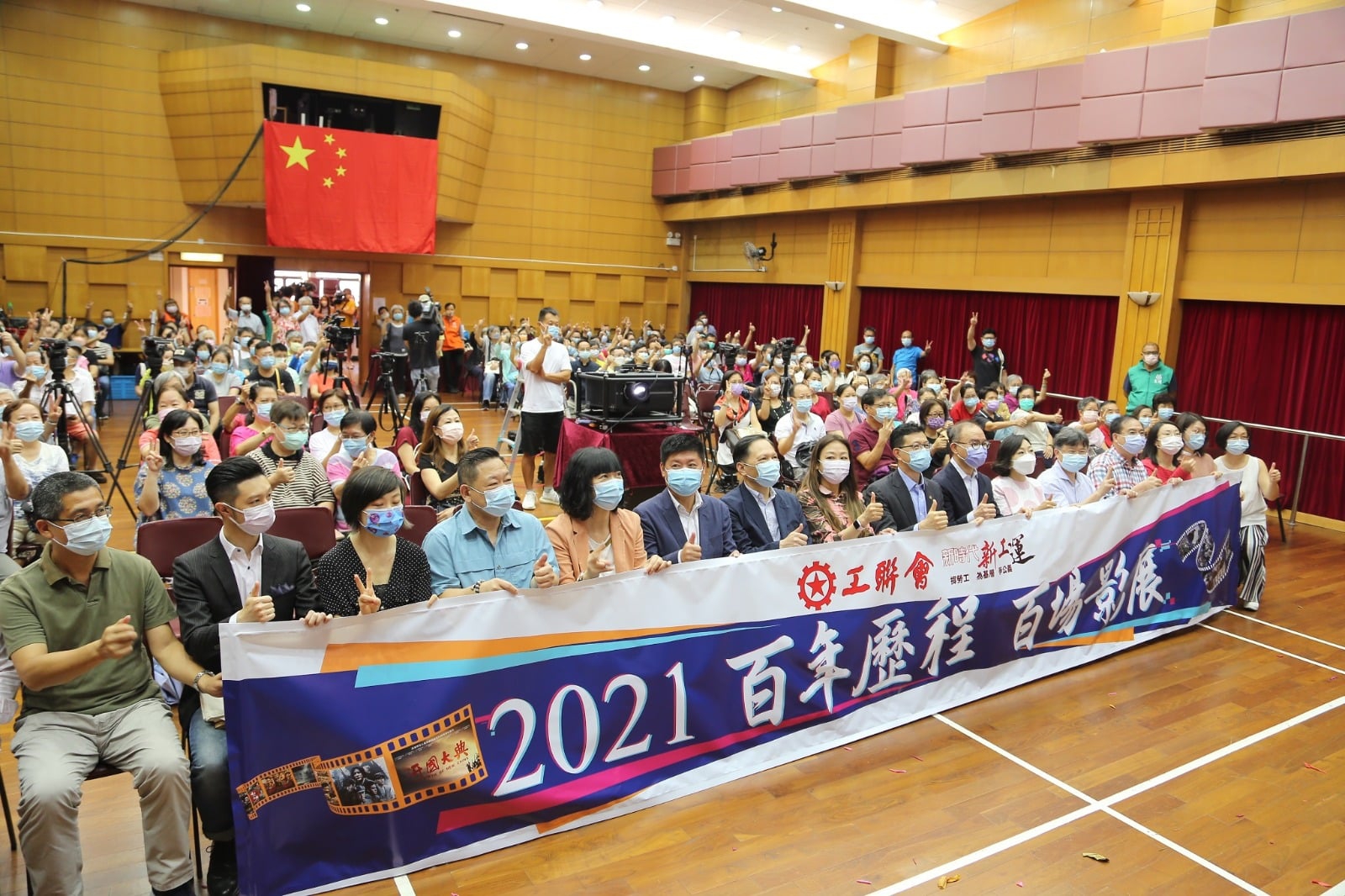 香港工会联合会(工联会)与银都机构有限公司及南方影业有限公司合作、并在中国移动香港有限公司支持下,主办《百年歷程 百场影展》,将分別在工人俱乐部、工会、地区服务处和社区会堂等场所,以及戏院包场等方式,在6至10月期间,进行约100场电影播放活动,让约1万名义工、会员及街坊透过轻松观赏电影,增加对国家及中国共产党走过100年光辉岁月的认识及了解。工联会今日(6月20日)假座工人俱乐部进行《百年歷程 百场影展》启动礼,应邀出席嘉宾有:政制及内地事务局局长曾国衞,中央人民政府驻港联络办公室社会工作部副部长李运福、周蔚,中国移动香港有限公司政企市场执行总监兰丽,南方影业有限公司副总经理林云华,连同工联会会长吴秋北,副会长梁颂恩、谢爱红、麦美娟、陈邓源、李子健,副理事长马志成、李永富和曾志文等负责人,以及200多名会员、家属和市民观看「古田军号」电影。