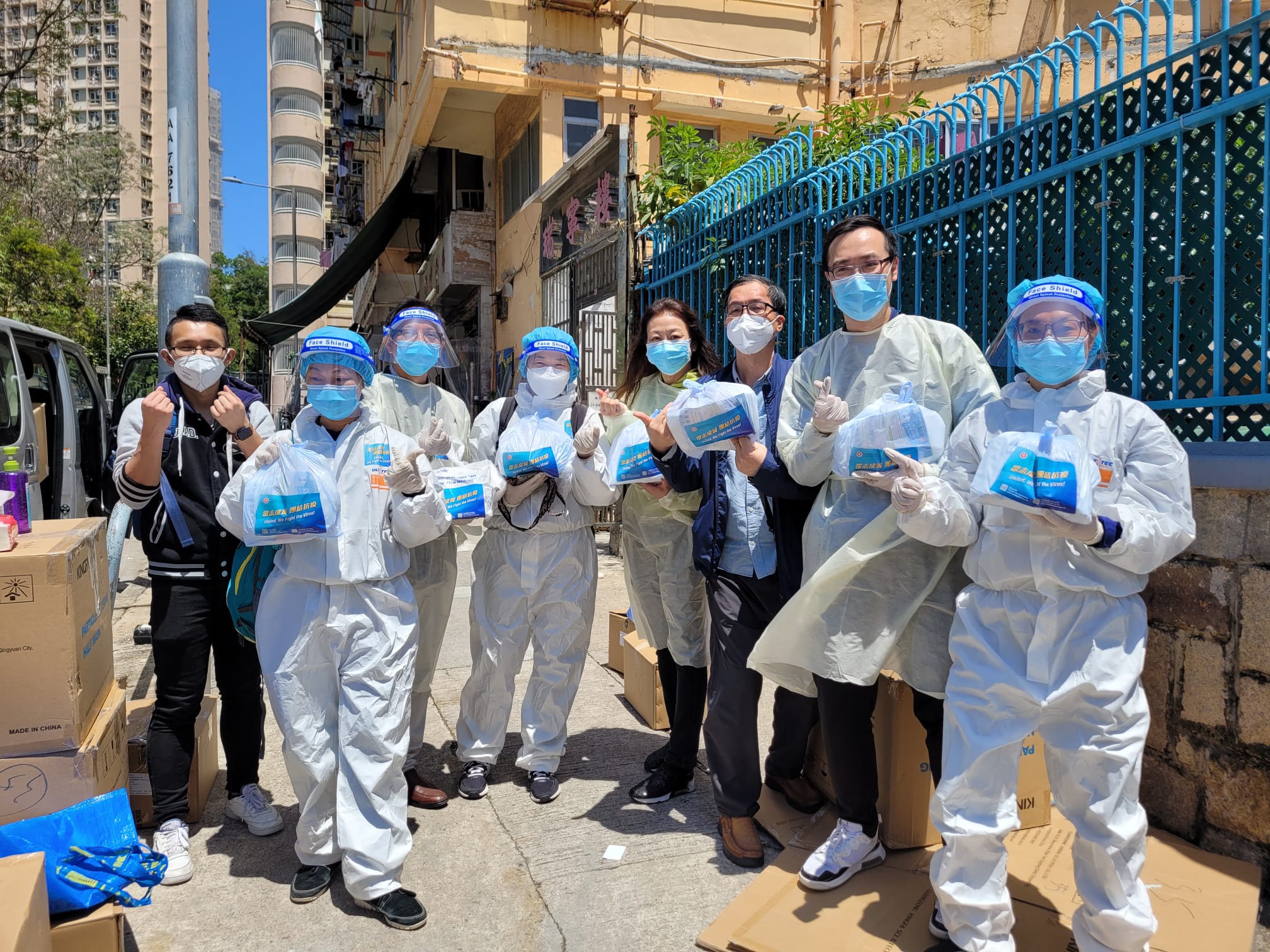 工联会负责人和义工继续在观塘、九龙城和湾仔区内参与特区政府派发中央援港抗疫物资给「三无」大厦的派送工作。工联会副理事长曾志文,大家知道观塘是一个老化的社区,有不少长者居住,希望能及早将抗疫物资送递给市民。
