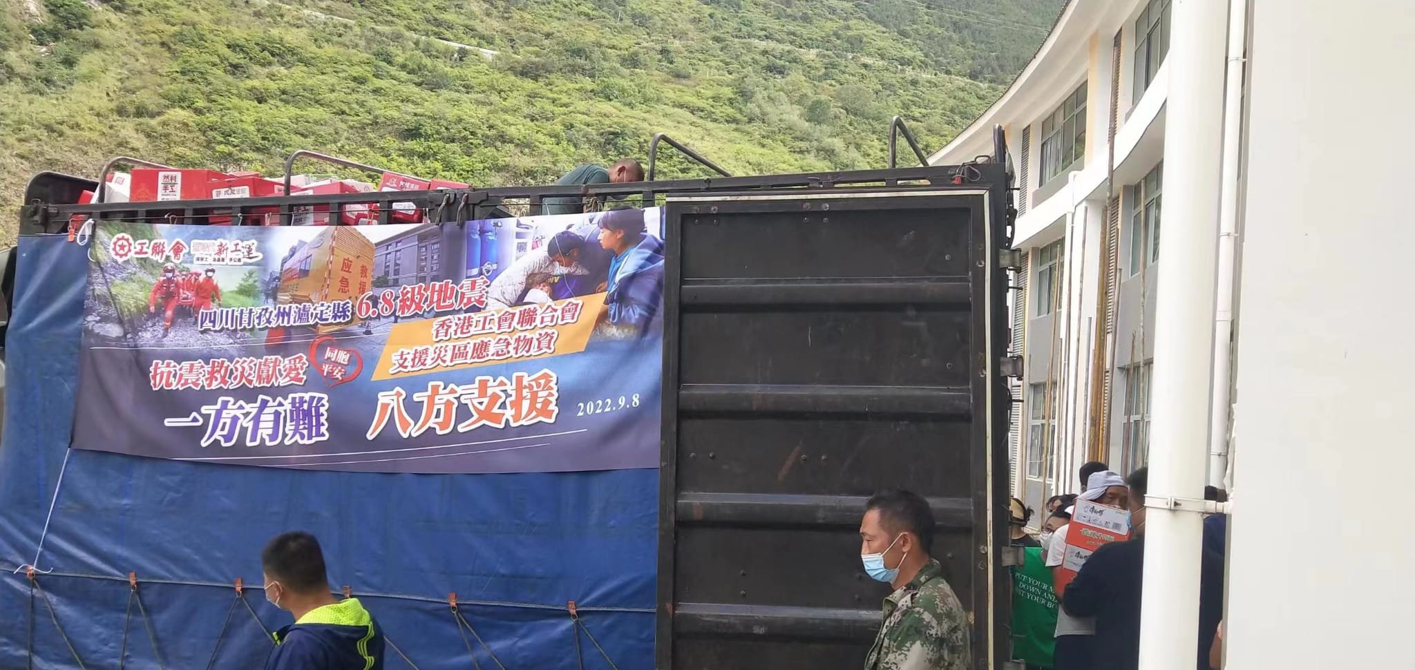 「一方有难 八方支援」,工联会为四川甘孜州泸定县灾民准备了超过800箱应急物资,包括有即食面、樽装饮用水、压缩饼干和蛋糕等,由广州以货车专车付运方式直达灾区,希望向灾民送上关心与支持。