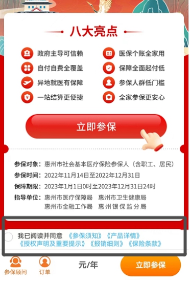 参保对象:惠州市社会基本医疗保险参保人(包括职工、居民)