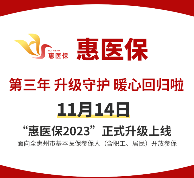 「惠医保」是由惠州市医疗保障局主导,惠州市卫生健康局、惠州市金融工作局、中国银行保险监督管理委员会惠州监管分局联合指导的「基本医保─商业健康保险」融合保险产品,也是基本医疗保险的补充,更是完善惠州市多层次医疗保障制度体系的重要环节。11月14日正式升级上缐,面向全惠州市社会基本医疗保险参保人(含职工、居民)开放参保。