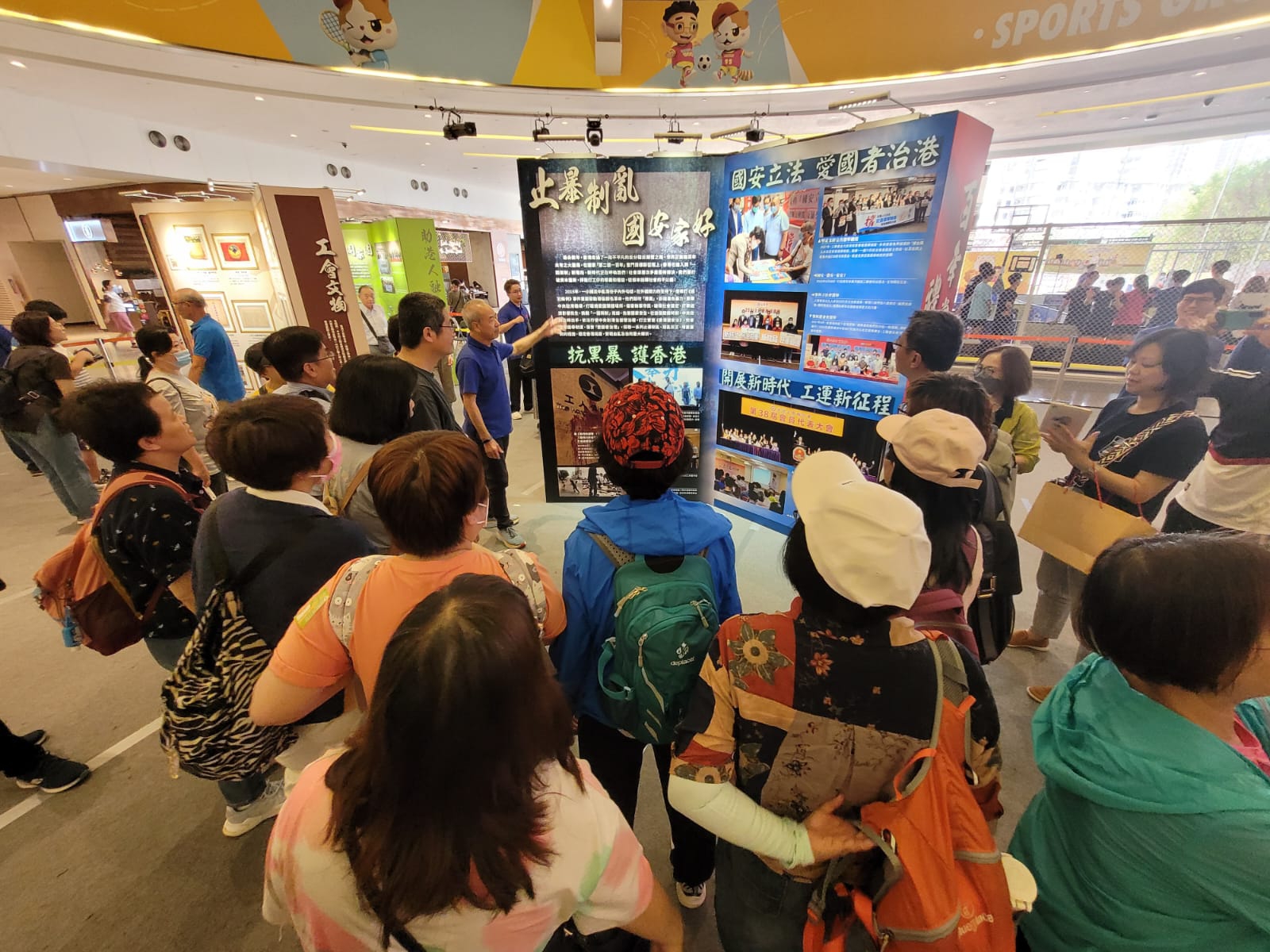 不少「工联人」大力支持,组团来参观今次展览。今日到场参观的系统工会包括:铁路电车、汽车隧道、船机纲、政协、民航、服务业等,另外东涌、油尖旺、观塘、黄大仙、九龙城和深水埗等地区服务处亦有组团来参观,场面非常热鬧。参观人士对展板的内容都深感兴趣,对宣传大使讲述的内容听得津津有味,甚至在不少图片中找到自己参与过的痕迹,兴奋地一起「打卡」拍照留念。![]()
