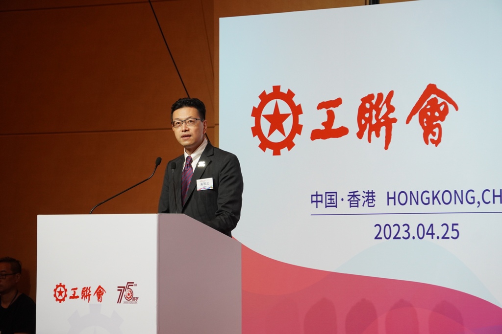 李家超视频致辞时赞扬工联会全力推动「一国两制」在香港全面准确落实,积极参与行政、立法和地区的工作,是「爱国者治港」的坚实力量。他说,工联会除为广大「打工仔」提供就业、培训及医疗等服务外,亦在全港设立多个地区服务处,关注社区民生。疫情期间,工联会推出各项支援计划及关怀行动,走在抗疫最前缐,是特区抗疫团队的重要一员。在中央的大力支持下,香港积极主动融入国家发展大局,工联会亦在内地包括粤港澳大湾区城市设立谘询服务中心,全方位支援及服务在内地工作、生活、经商及就学的香港人,服务市民的足迹除了香港,亦遍布内地。「五.一」国际劳动节将至,李家超感谢广大劳工为香港经济和社会发展作出的努力和贡献。同时,他期望未来工联会继续与特区政府紧密合作,砥砺奋进,为市民谋幸福,为香港谋发展,并祝愿工联会在下一个75年继往开来,会务再创高峰。