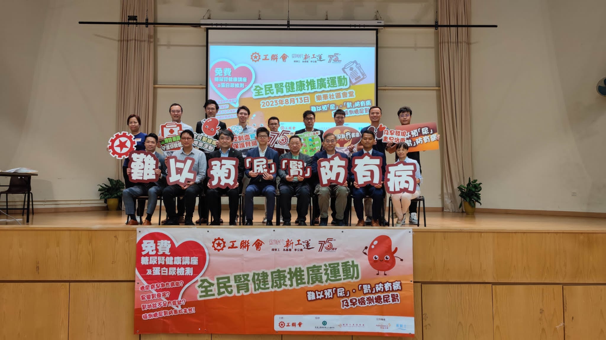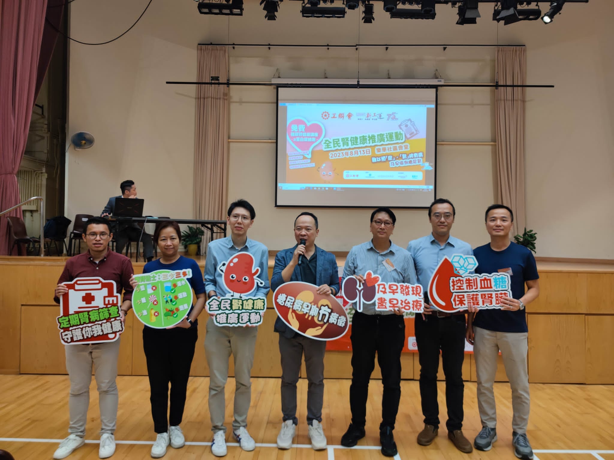 工联会于6至8月期间举办「全港性糖尿肾检查计划」,在阿斯利康(香港)有限公司、工联会工人医疗所、乐群社会服务处、社企「银骑士」、工联会地区服务处等多方协助下,在全港各区进行检测,让市民了解自己肾脏的情况。同时将安排健康讲座,由医生、专业医护人员等,向参加者分享更多肾健康的知识,今次是最后一场筛查活动。