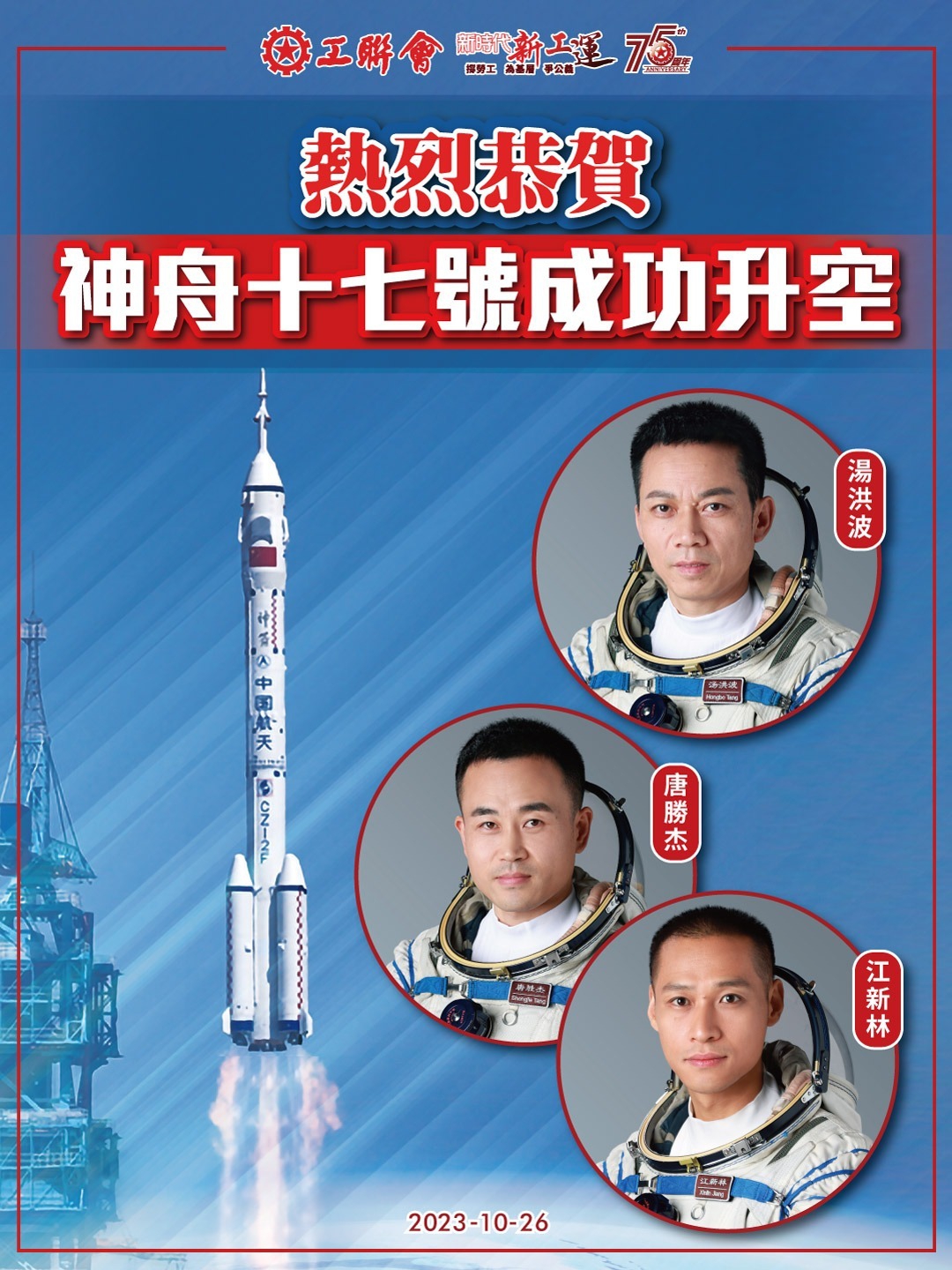 2023-10-26 工联会祝贺神舟十七号顺利发射升空
