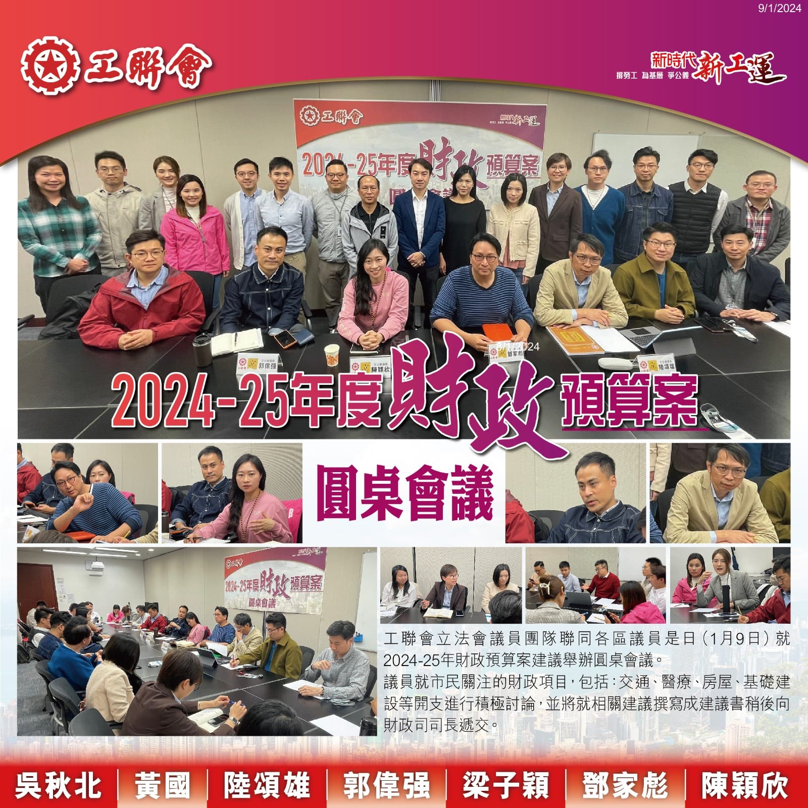 工联会立法会议员团队联同各区议员于1月9日就2024/25年《财政预算案》建议举行圆桌会议。