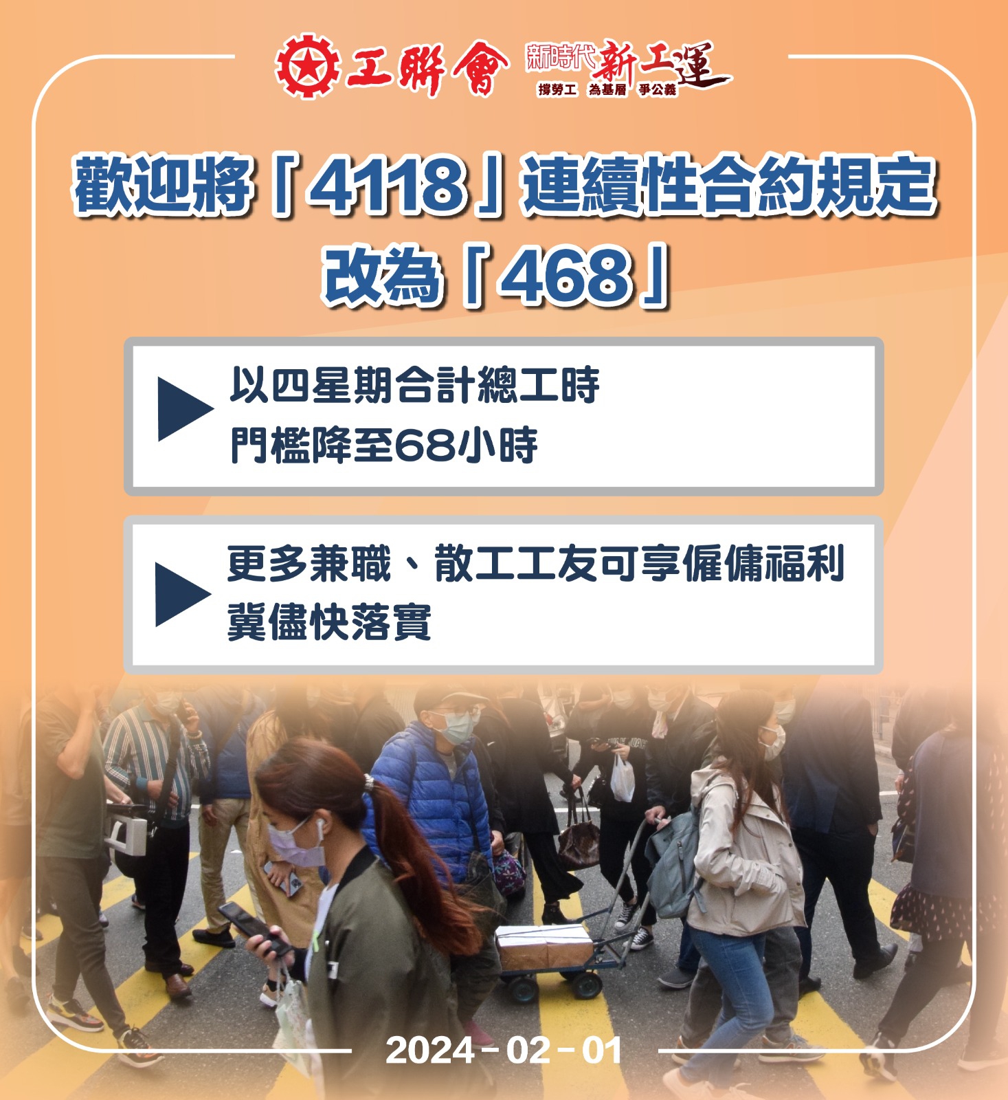 2024-02-01 工联权委:欢迎将「4118」连续性合约规定改为「468」