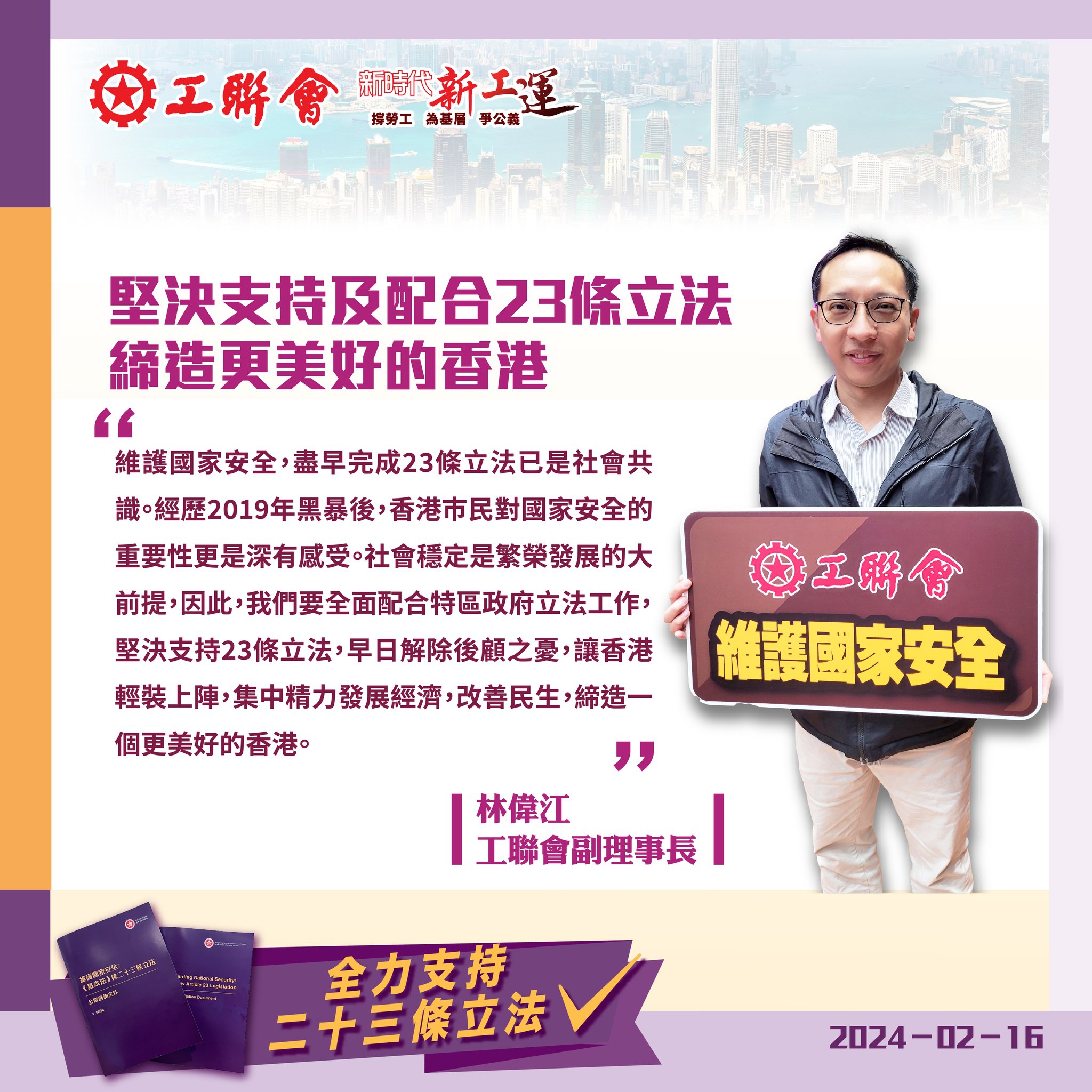 2024-02-16 【全力支持23条立法系列之十二】林伟江:坚决支持及配合23条立法 缔造更美好的香港