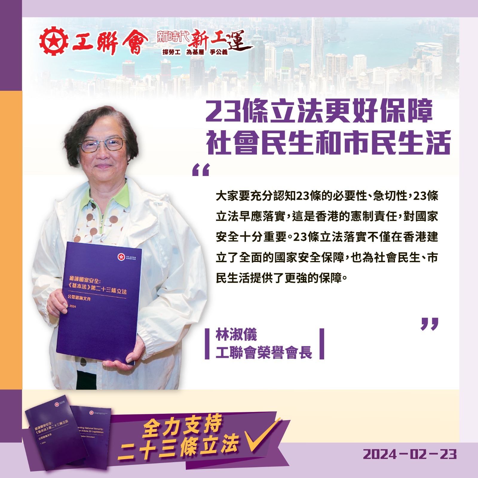 2024-02-23 【全力支持23条立法系列之十八】林淑仪:23条立法更好保障社会民生和市民生活