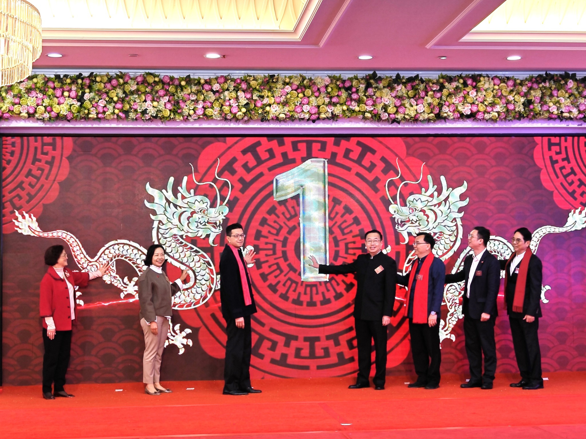 适逢今年是中华人民共和国成立75周年,大会举行了一个简单而隆重的仪式,由吴秋北带领嘉宾和工联会负责人,点击电子萤幕,让金龙飞跃,寓意工联会在龙年继续坚守初心,关爱同行,服务市民走在前。
