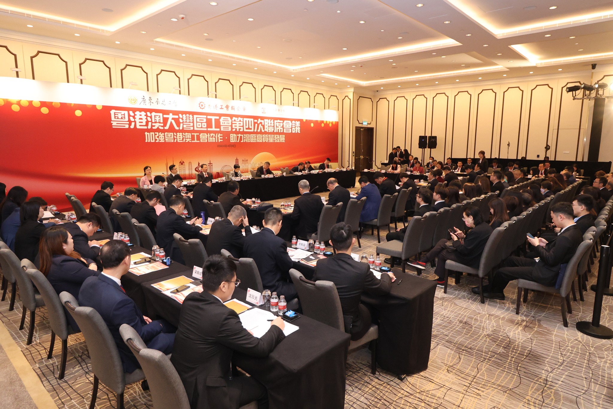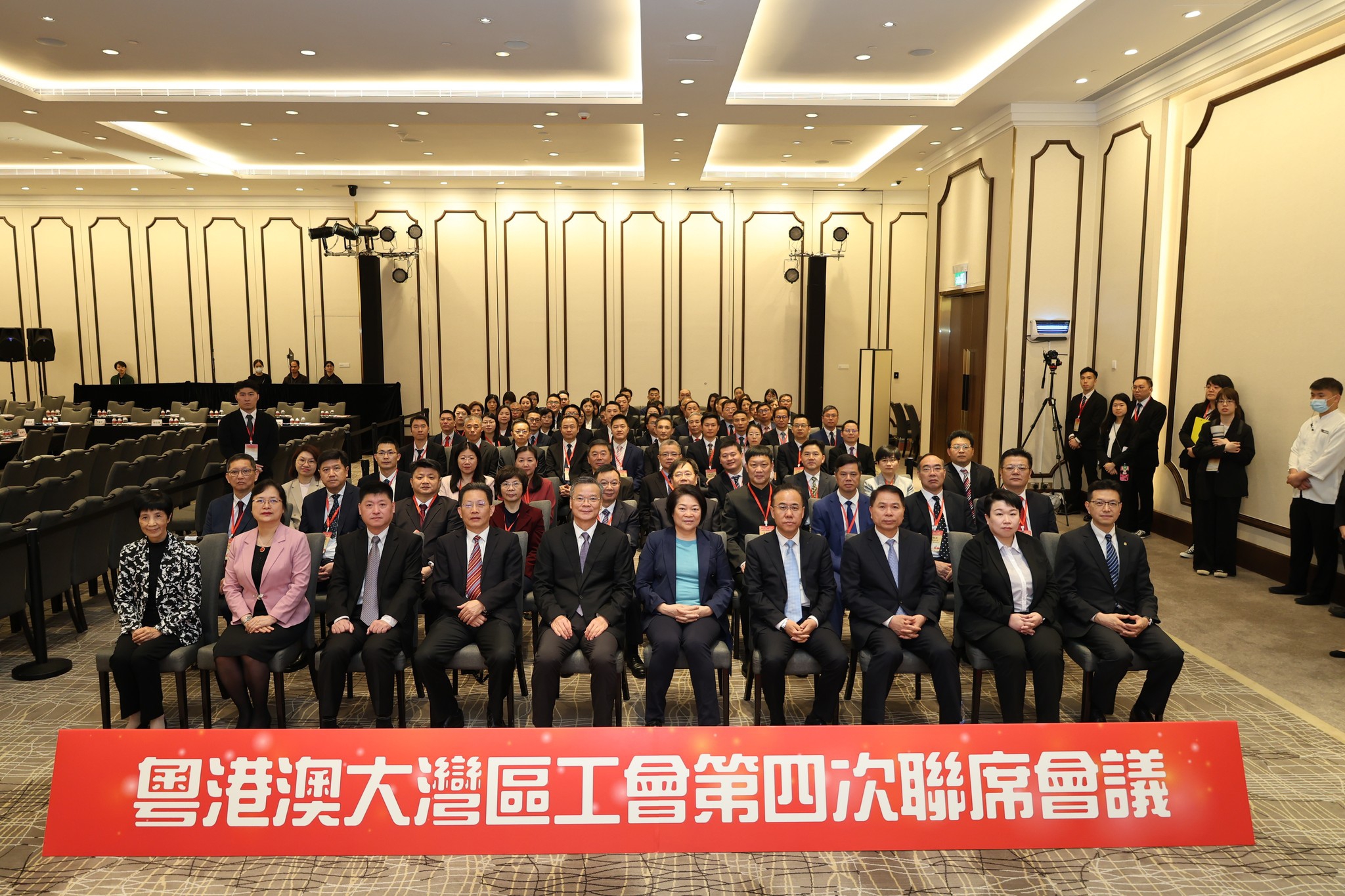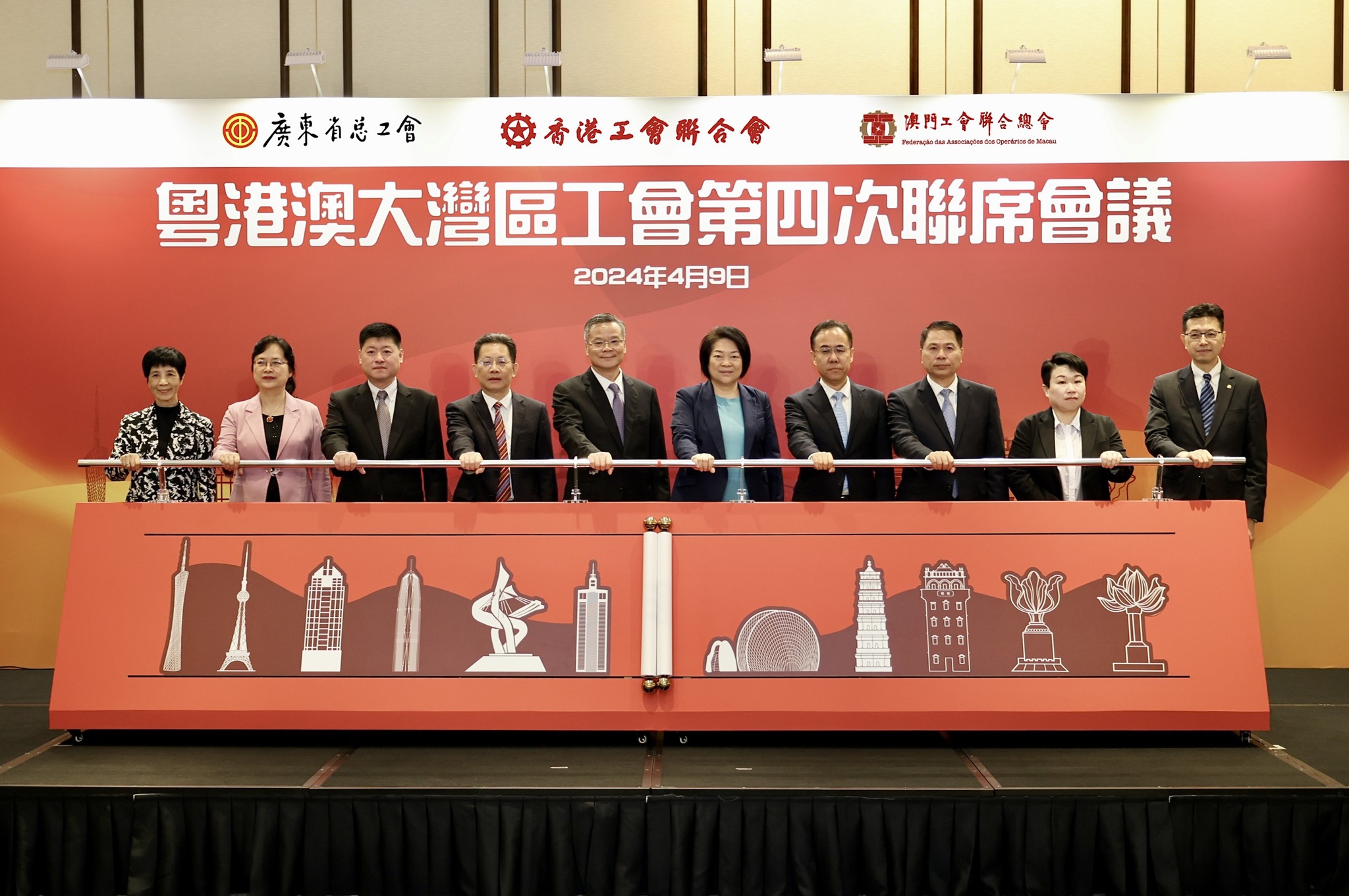 由广东省总工会、香港工会联合会、澳门工会联合总会共同举办,澳门工会联合总会轮值主办的「粤港澳大湾区工会第四次联席会议」4月9日在澳门召开,会议主题为「加强粤港澳工会协作 助力湾区高品质发展」,围绕抓住粤港澳大湾区建设重大歷史机遇,共商工会深度合作,共谋工会融合发展,为实现中华民族的伟大復兴贡献力量。