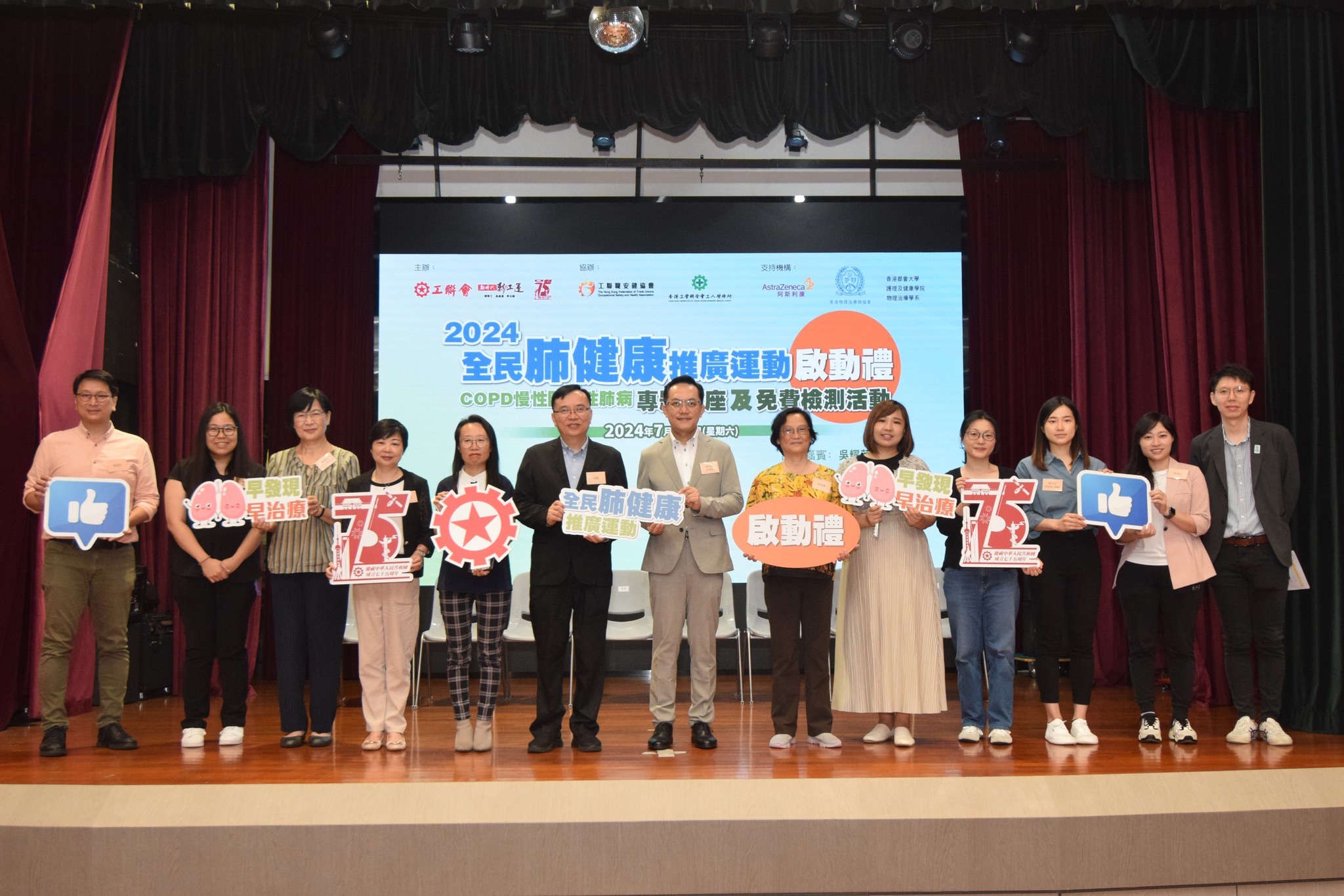 「2024全民肺健康推广运动」由工联会主办,工联职安健协会及工联会工人医疗所协办,阿斯利康(香港)有限公司、香港物理治疗师协会及香港都会大学护理及健康学院物理治疗学系支持。