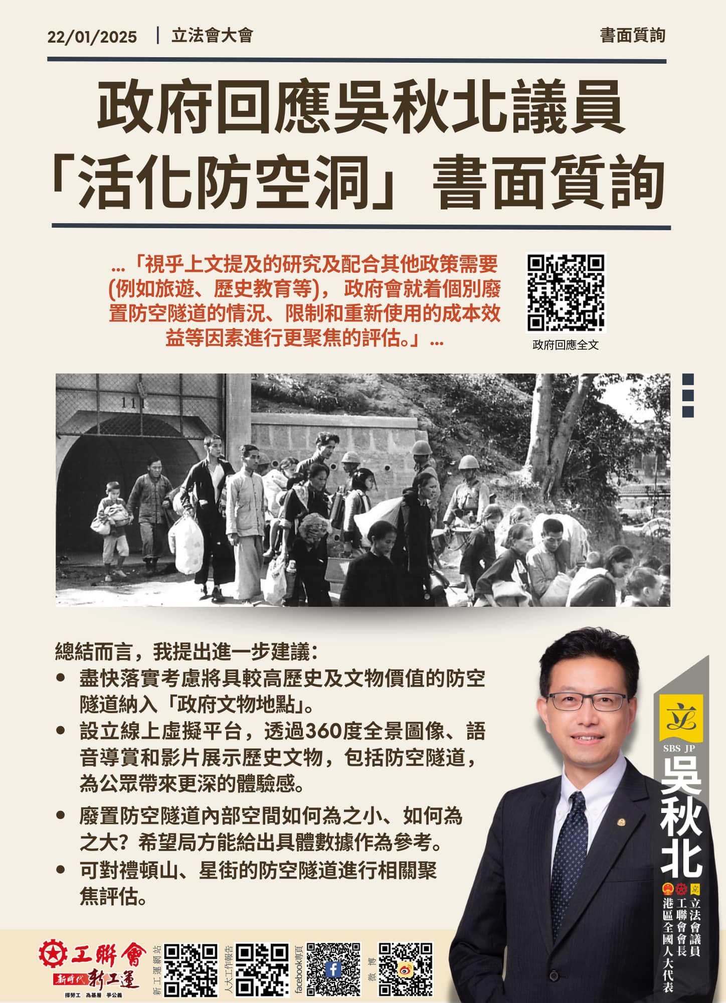 2025-01-22 吴秋北:政府尽快落实考虑将具较高歷史及文物价值的防空隧道纳入「政府文物地点」