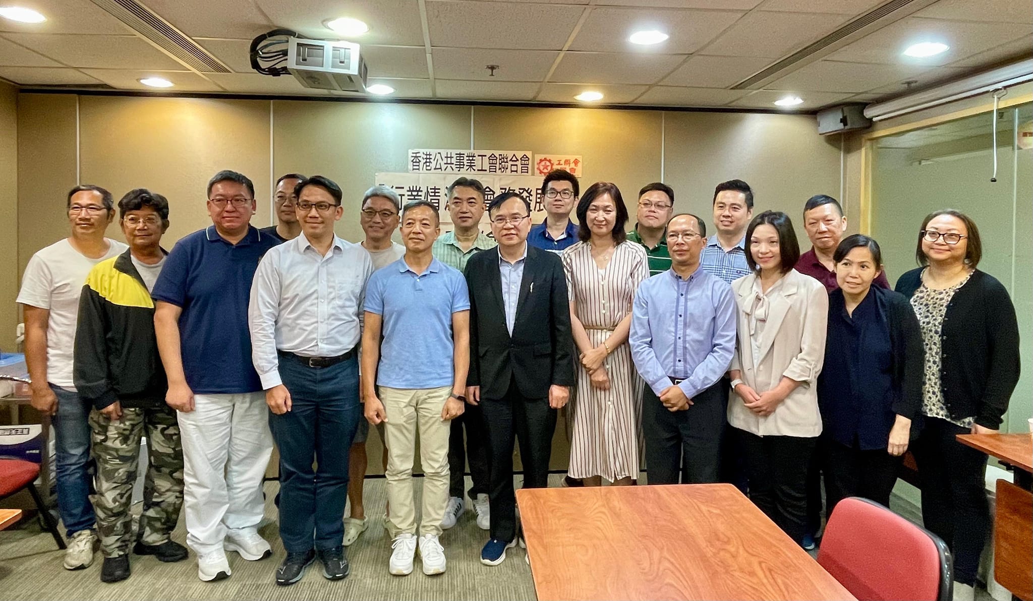 工联会理事长黄国,连同副会长兼工人俱乐部主任程岸丽、副理事长苏栢灿及副秘书长陈善明,8月16日与香港公共事业工会联合会(公共联会)多位属下工会代表举行座谈会,交流行业发展及工会会务情况。