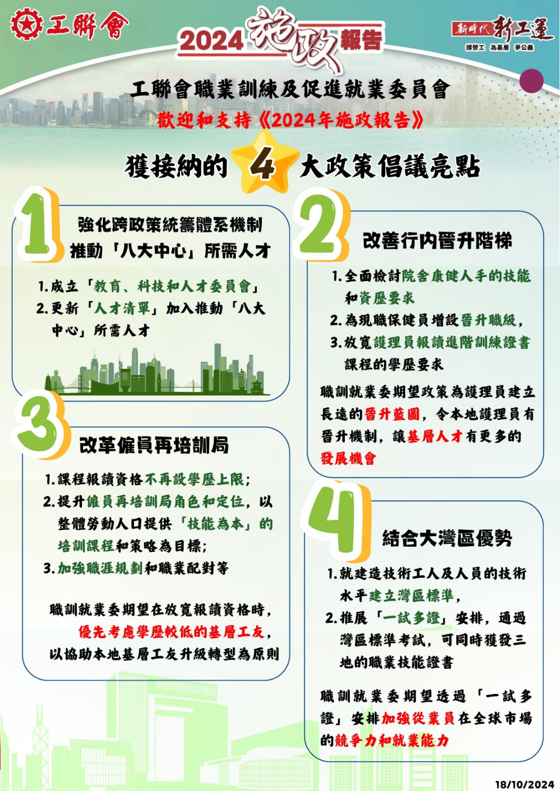 2024-10-18 工联会职业训练及促进就业委员会欢迎和支持《施政报告》