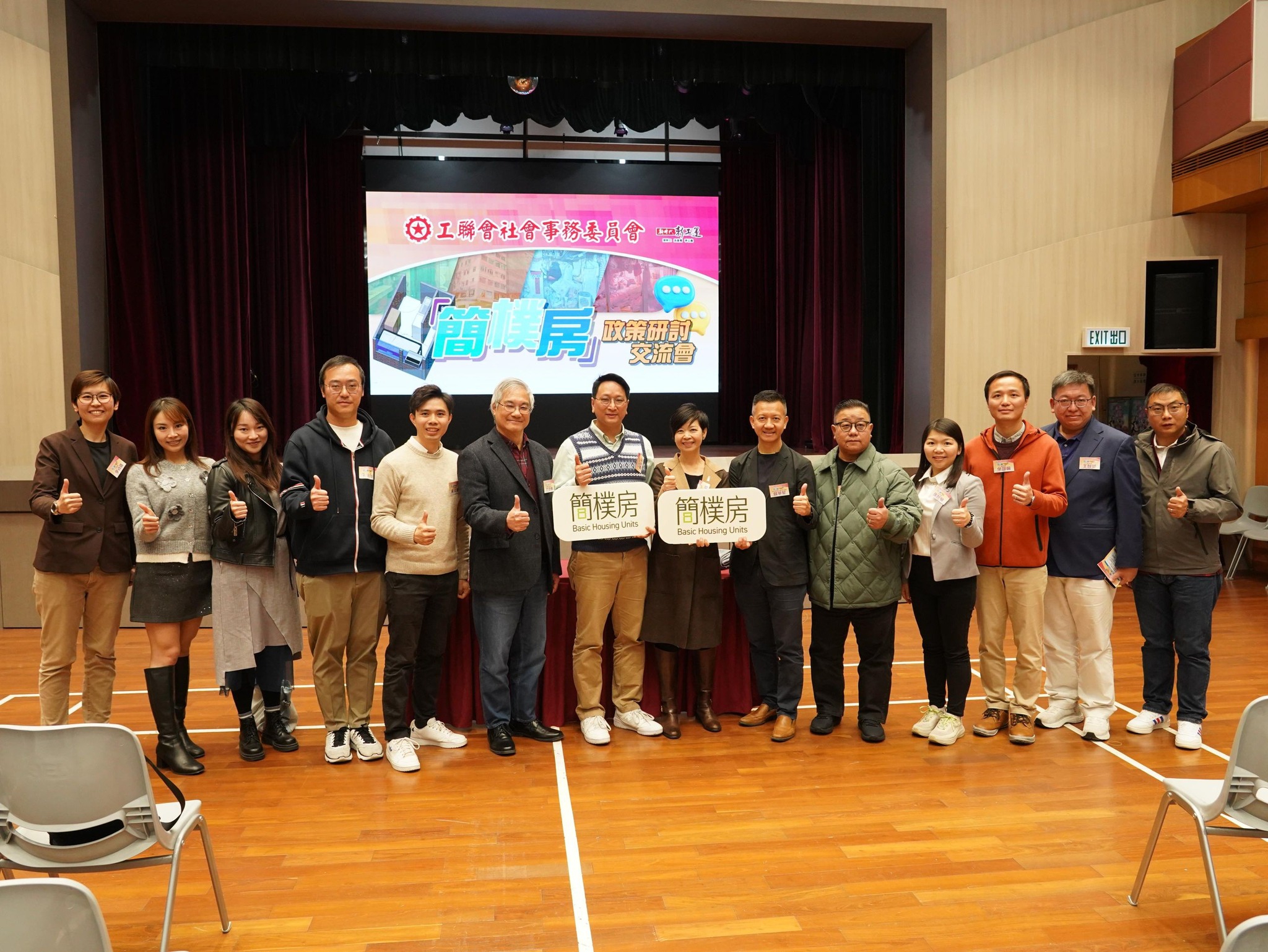 工联会社会事务委员会今日(12月21日)举办「简朴房」政策研讨交流会。应邀出席的房屋局局长何永贤简介了建议方案并细心聆听了现场嘉宾及出席者的意见。香港理工大学暂任副校长凌嘉勤教授,乐群社会服务处总幹事黄万成,以及香港社会创投基金创办人兼行政总裁魏华星三位特邀嘉宾作主旨发言。工联会副理事长、社会事务委员会主任、立法会议员邓家彪作开场发言。九龙城区议员黄文港和油尖旺区议员孙智敏代表工联社会事务委员会(工联社委)表达对取缔劏房及政府规管「简朴房」政策的关注及方案。