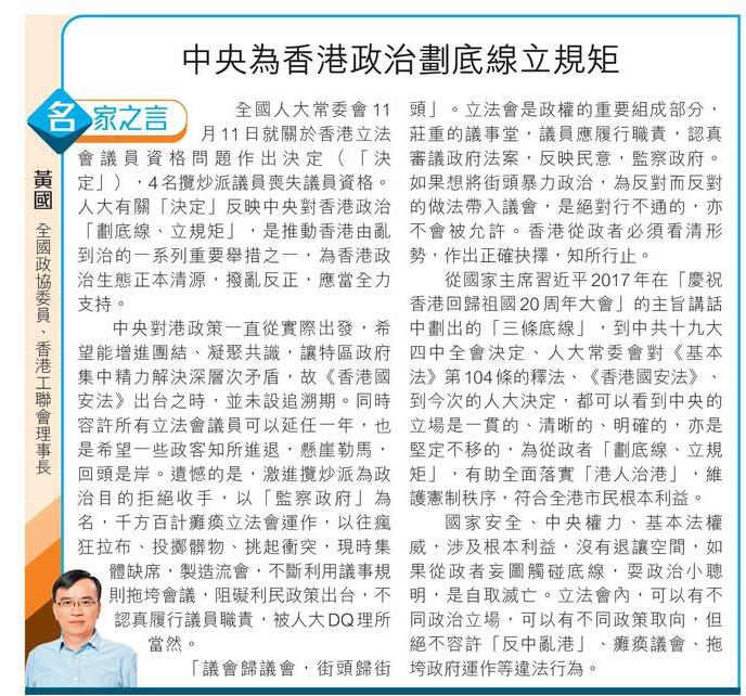 【黄国】中央为香港政治划底缐立规矩