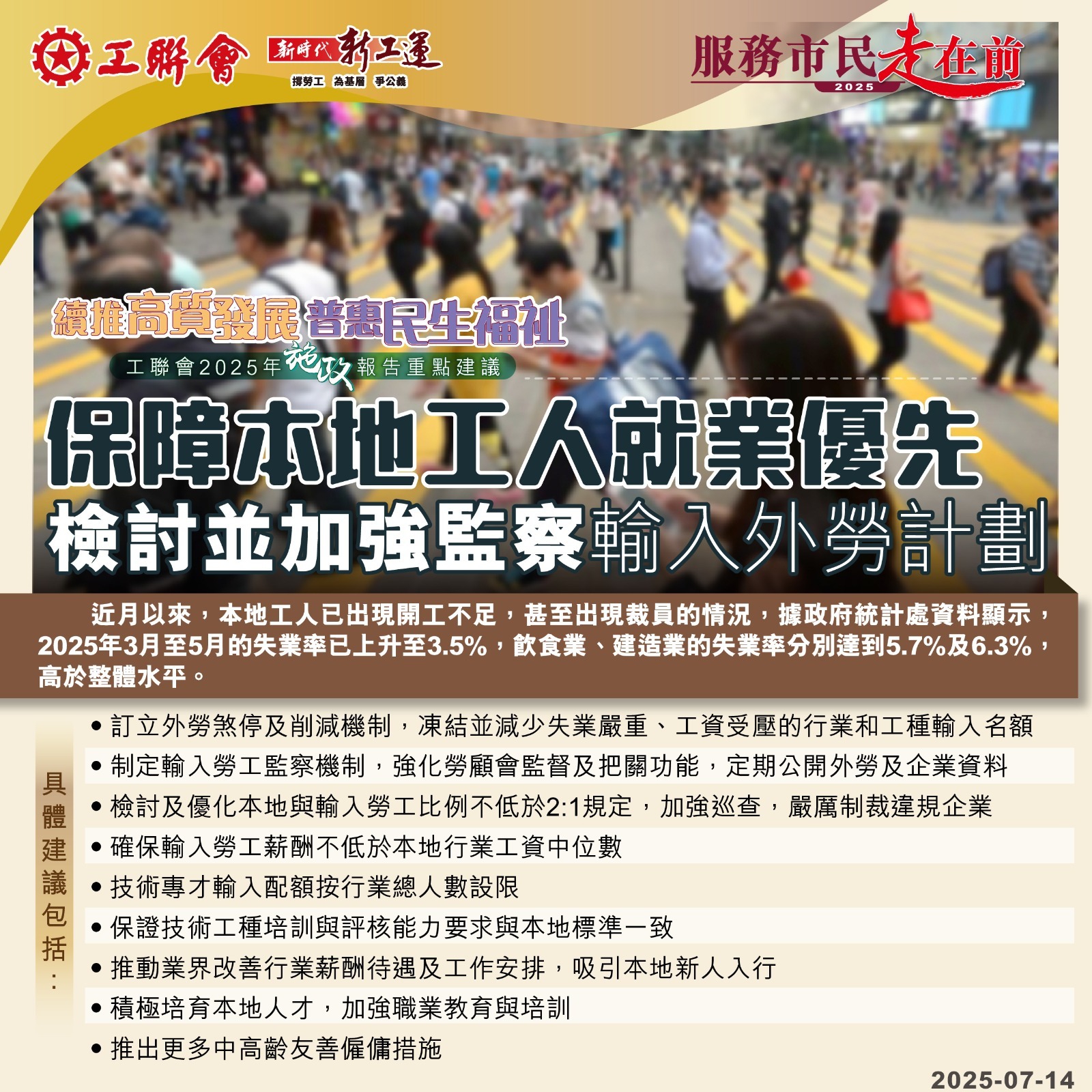 2025-07-14 【2025年施政报告重点建议】工联会促请政府检讨并加强监察输入外劳计划