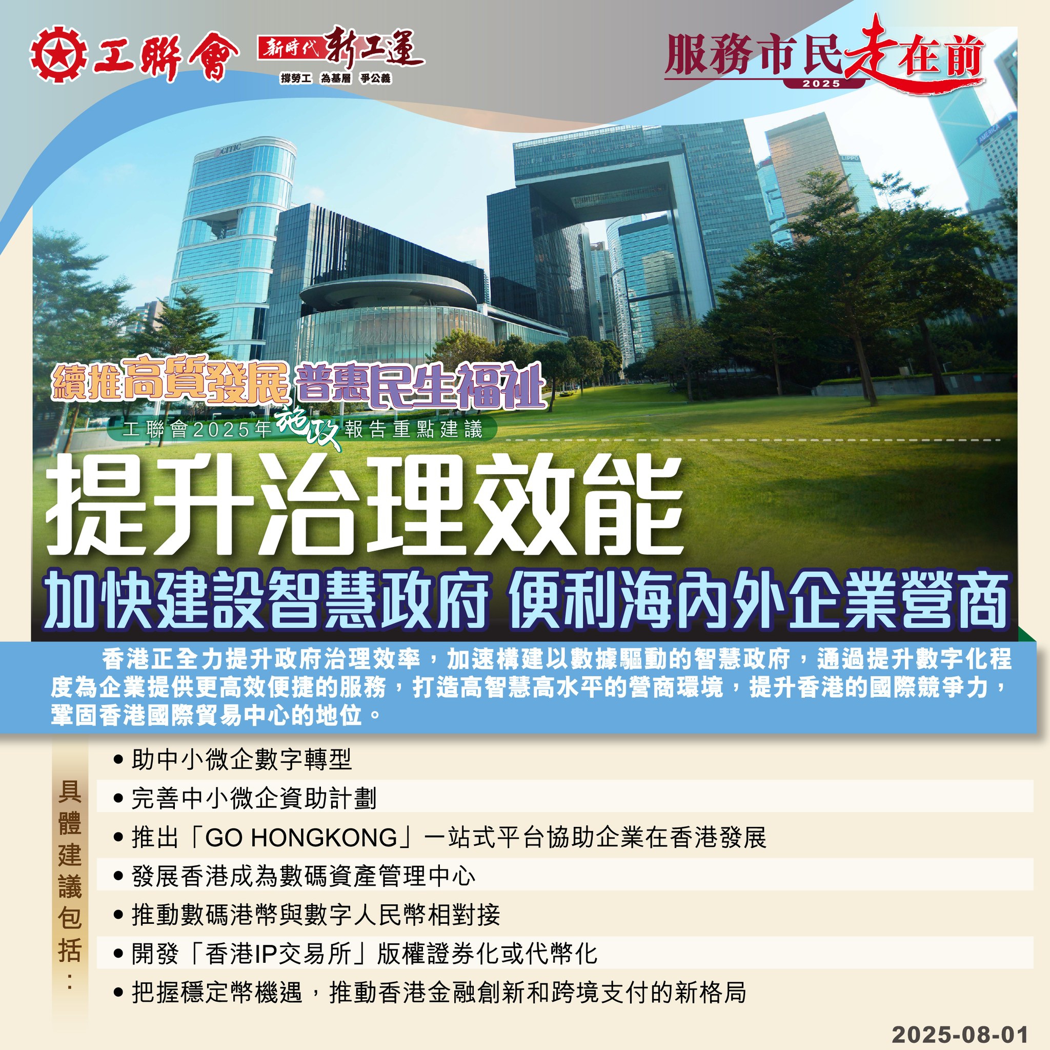 2025-08-01 【2025施政报告重点建议】续推高质发展 普惠民生福祉:提升治理效能 加快建设智慧政府 便利海内外企业营商