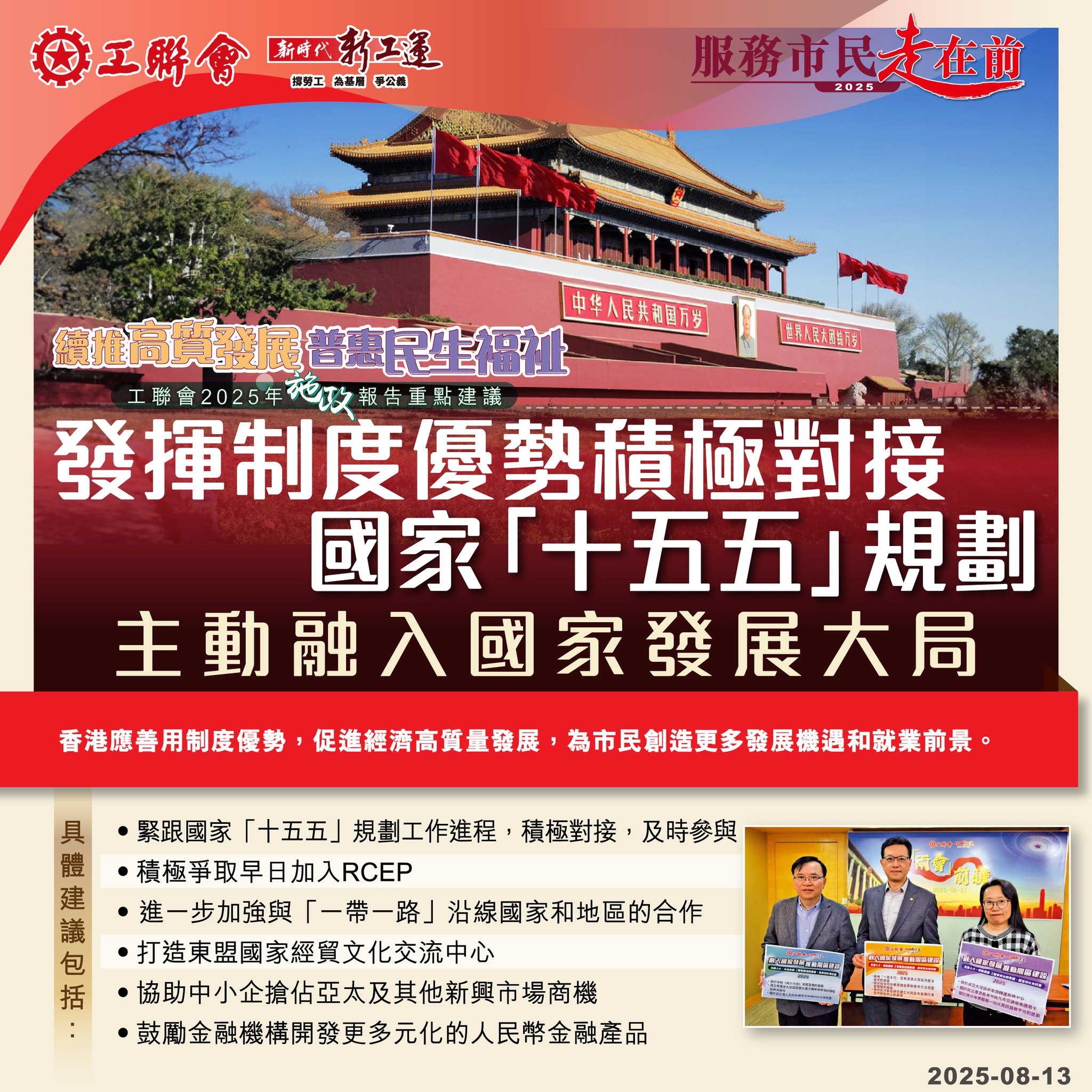 2025-08-13 【2025施政报告重点建议】续推高质发展 普惠民生福祉:发挥制度优势 积极对接国家十五五规划 主动融入国家发展大局