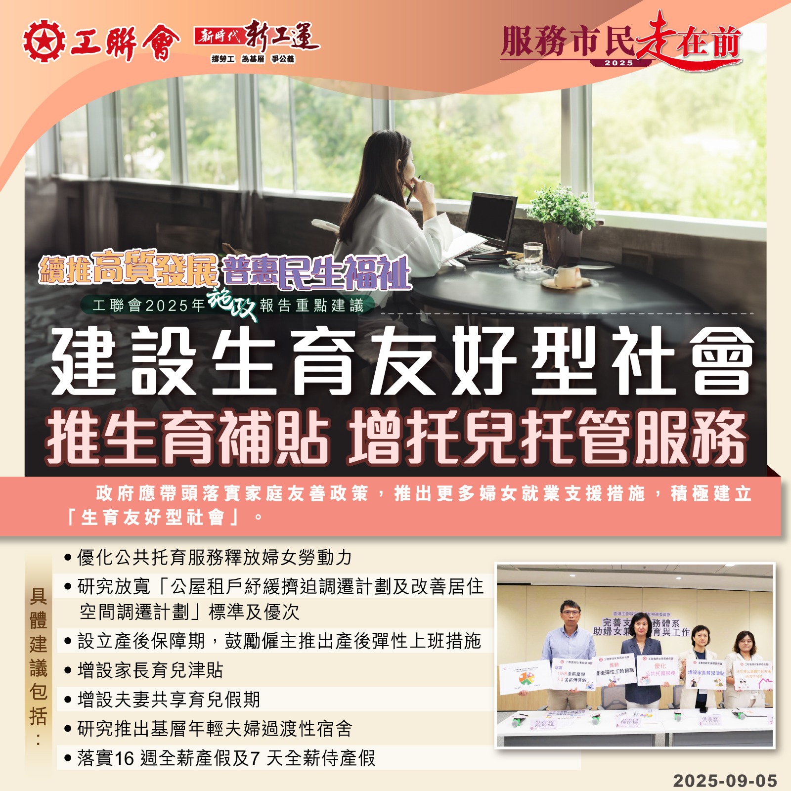 2025-09-05 【2025施政报告重点建议】续推高质发展 普惠民生福祉:建设生育友好型社会 推生育补贴 增托儿托管服务