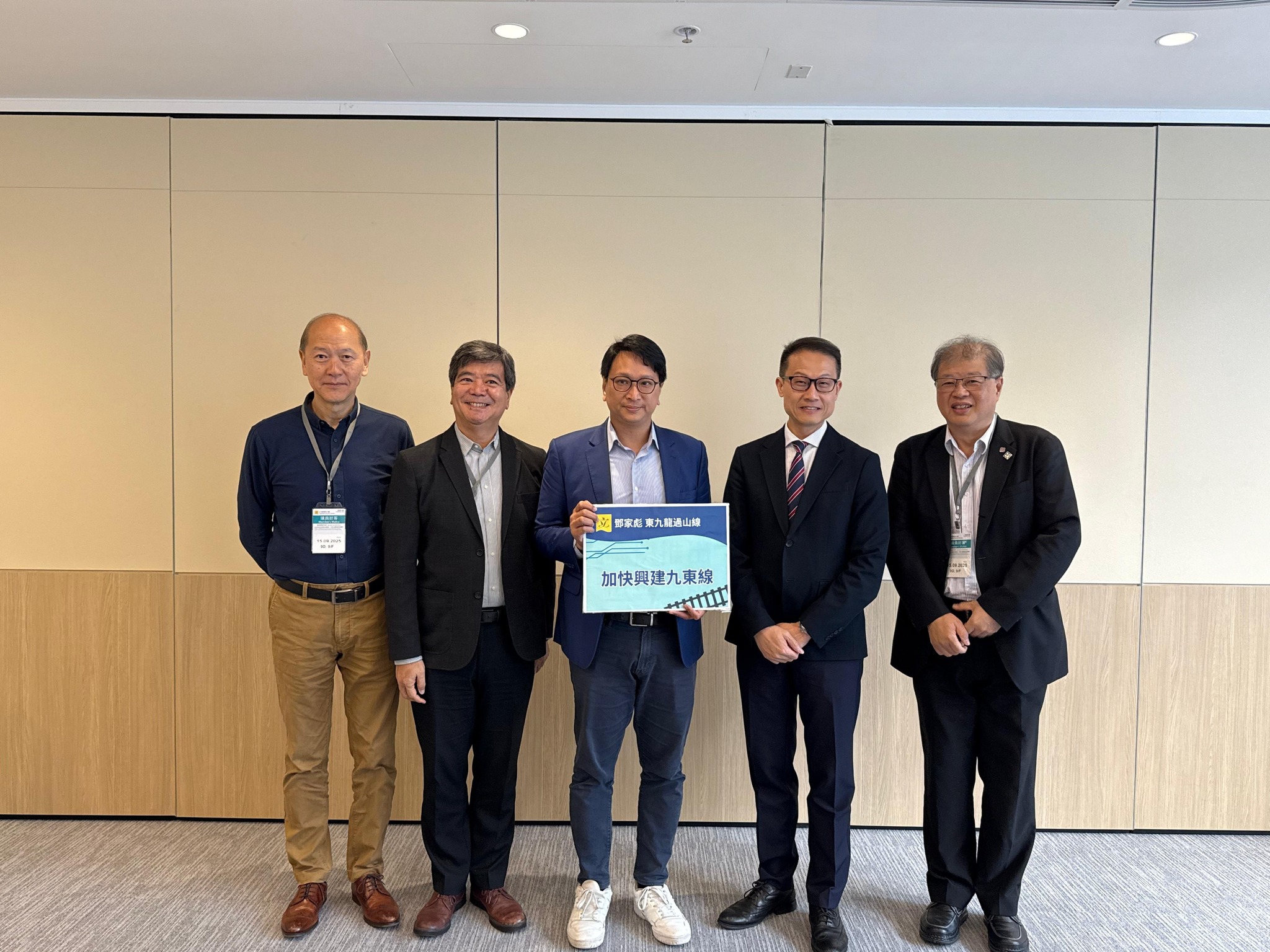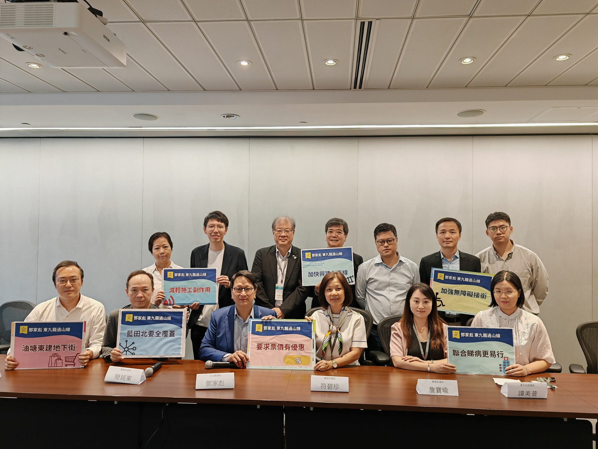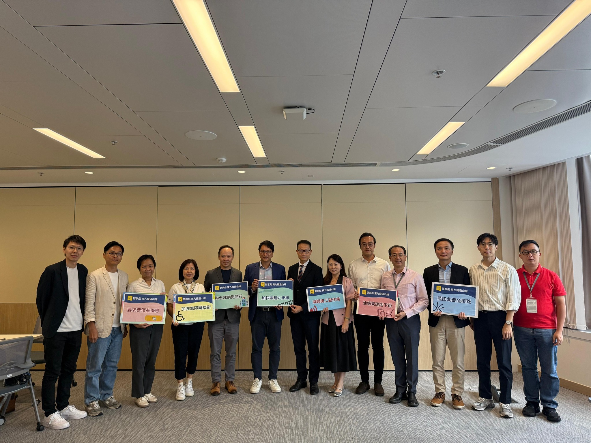 工联会副理事长、立法会议员邓家彪于今日(9月15日)联同观塘区议员简铭东、馀邵伦、黄启燊、李嘉恒、程海欣、吕东孩、符碧珍、詹宝瑜、庞智笙、林玮、关坚荣,黄大仙区议员莫健荣、谭美普、社区幹事伍胤辰,以及铁路专业代表香港铁路运输专业人员协会主席张年生、副主席董业伟博士及香港理工大学电机工程同学会主席邹海珠与路政署署长邱国鼎会面,并于会面后向传媒公佈过山缐的最新进展。