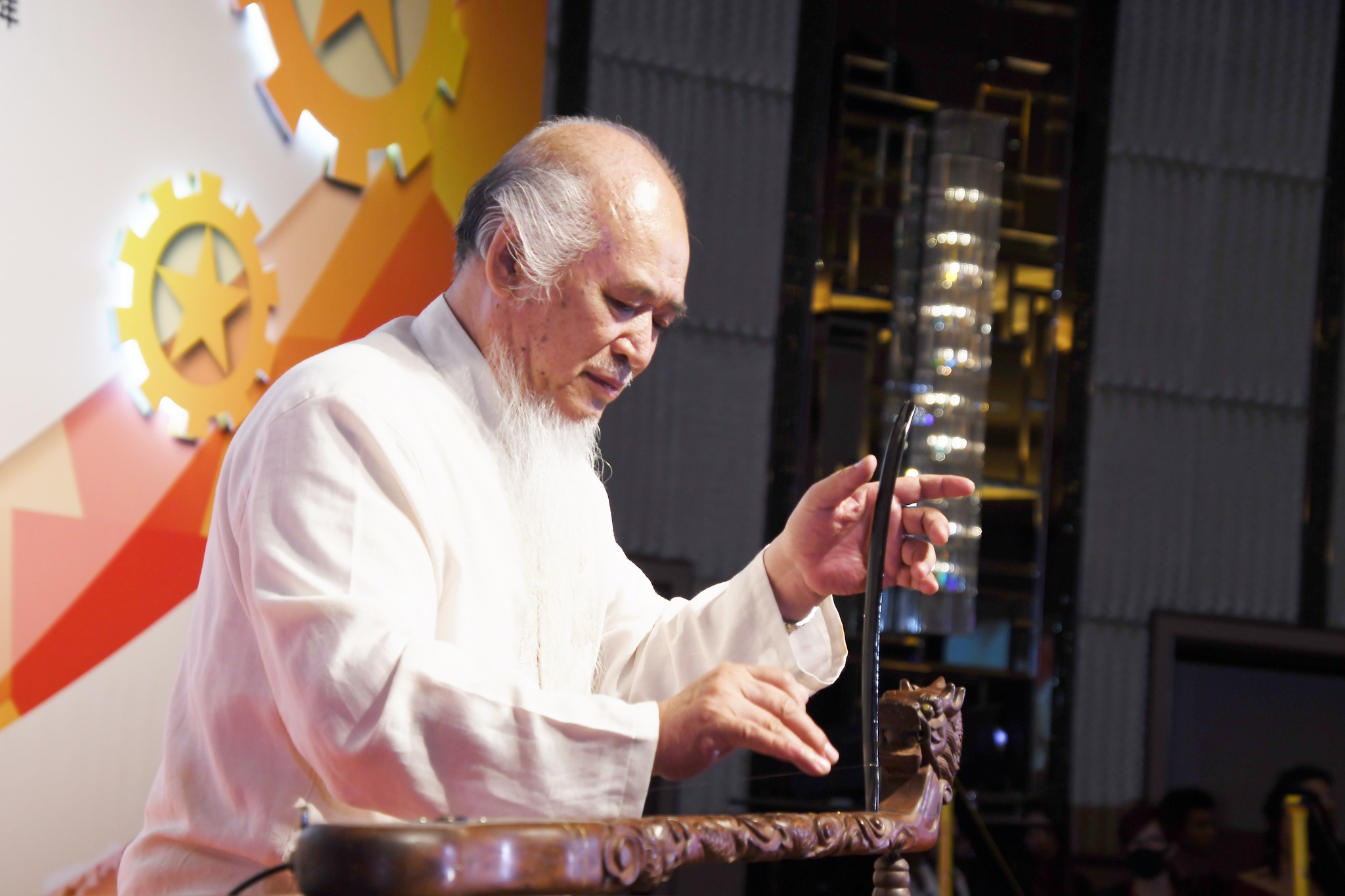 蔡清風大師-獨弦琴(獨奏)《京島漁歌》 蔡清風,於 1981 年移居香港,是現今國禮級、殿堂級書法家、教育家、國務院國際文化藝術交流中心對外交流書法家、中國民族管弦學會吹管樂及獨弦琴演奏家、中國文聯書畫藝術交流中心一級創作員、中國語文漢字委員會成員。從事書法、民樂教研培訓 40 餘載,桃李盈牆,長期堅持以藝術舞臺做慈善,捐出大量書法作品義賣、民樂表演義演、義教,熱心公益,被譽為慈善藝術家。