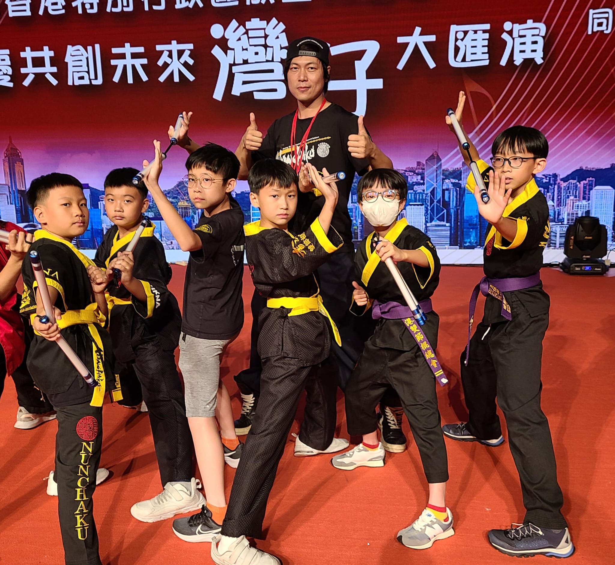 總會今次在文藝晚會節目《雙節棍藝》內容簡介: 《雙節棍藝》致敬李小龍宗師的電影經典動作,適逢今年是李小龍先生離開世界五十年。演繹動作包括雙節棍考核套路第一級,加上活力與動感的雙節棍藝套路,默契。配合燈光視覺,如名所知,演出者具更多協調與技術才舞動出華麗流暢的雙節棍道。