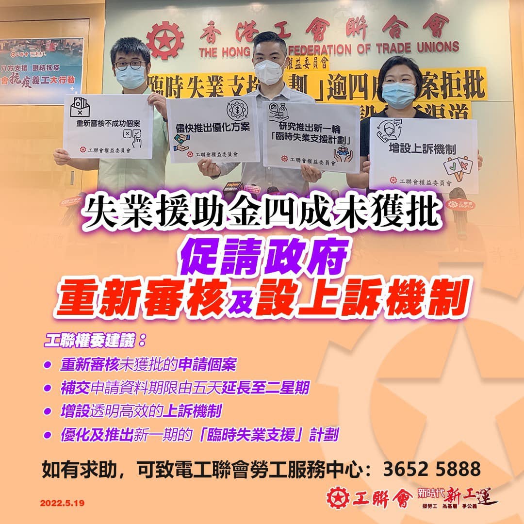 2022-05-19 「臨時失業支援計劃」逾四成個案拒批 促請政府重新審核及增設上訴渠道