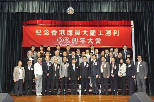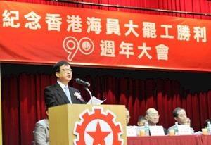 工聯會及香港海員工會(工會)今天假座工人俱樂部舉行「紀念香港海員大罷工勝利90週年大會」,約有300多名兩岸四地工會代表和嘉賓聚首一堂,懷緬這段光輝歷史,藉以發揚工人們愛國、團結及維權的精神,推動香港工運發展。