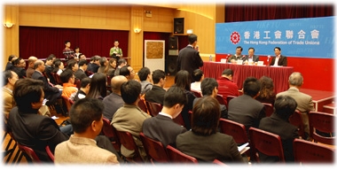 約80名工聯會負責人、常務理事及屬會代表出席是次座談會,大會由工聯會會長鄭耀棠主持,理事長黃國健代表工聯會向曾蔭權遞交意見書。多名代表把握機會向曾蔭權發問,包括如何改善僱員現時就業困境及貧富懸殊情況,如何合理地讓僱員分享經濟成果,要求政府立法制訂最低工資,盡快落實多項基建工程,以及爭取公務員加薪等,討論氣氛熱烈。