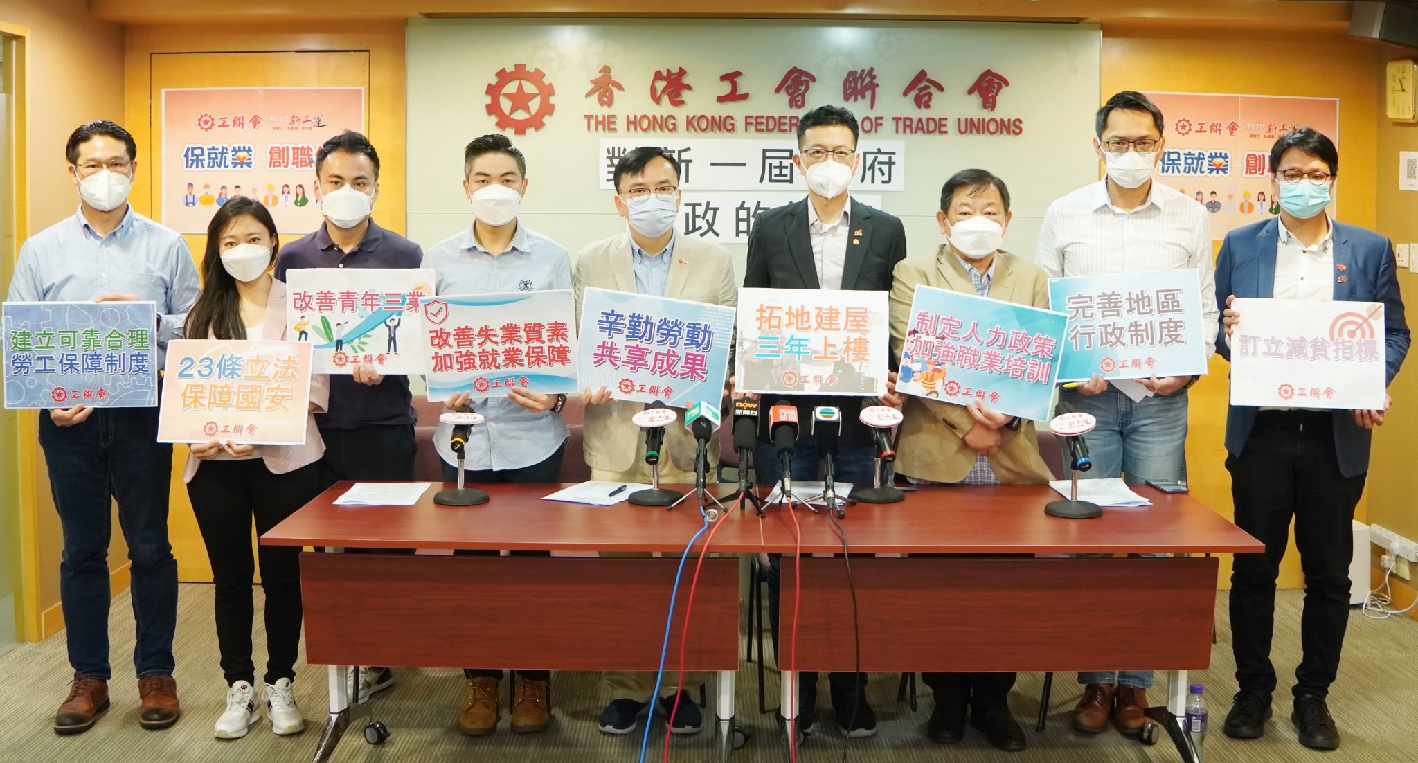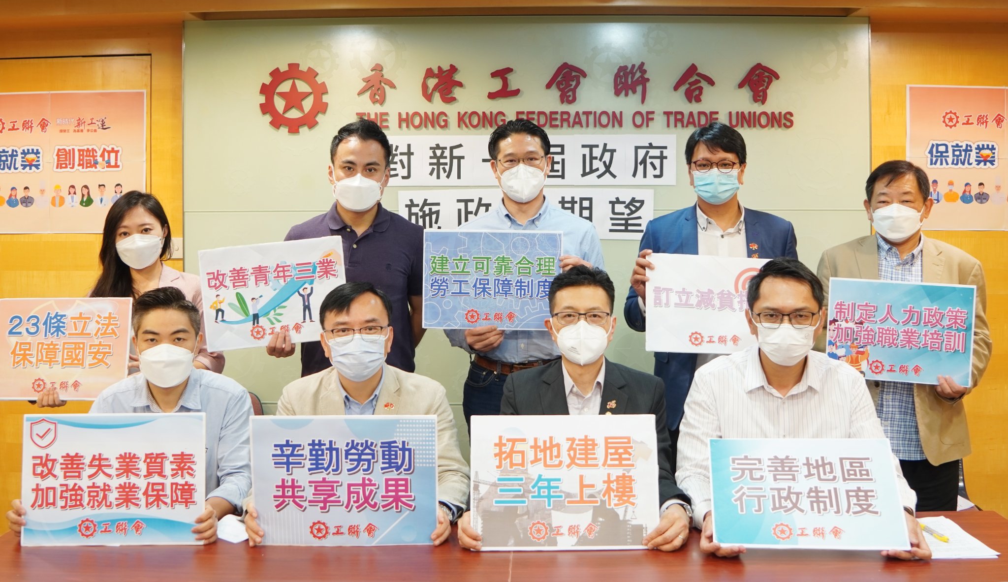 工聯會擁護及支持習主席對香港問題的分析和指示,並對新㇐屆政府寄以厚望,相信李家超特首能夠帶領團隊切實回應基層勞工市民的迫切需求,做到務實有為,不負人民。讓社會得以發展、勞工民生得以保障,市民可以安居樂業。工聯會本著新工運「共建 共榮 共享 共贏」理念,全力支持政府落實良政善治,就六大範疇對新㇐屆政府提出期望,㇐、改善經濟,盡快通關,共享成果;二、改善就業質素,加強保障,縮窄貧富懸殊;三、增闢土地,加建房屋;四、培育人才、關愛青年;五、廿三條立法,保障國家安全;六、完善地區行政制度。