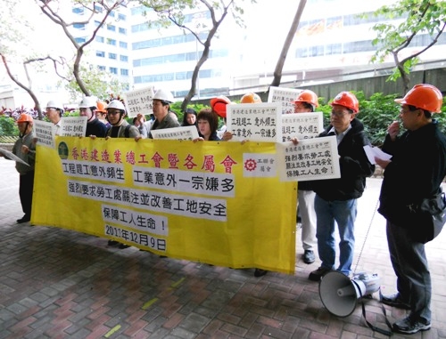 建造業總工會理事長周聯僑表示,今年發生太多宗涉及工友死亡的工業意外,截至12月,建造業的死亡個案已經高達22案,遠遠超出去年的9宗,創5年新高,可見情況相當嚴重。而死者往往是家庭經濟支柱,對工友的家庭環境造成很大的壓力及影響,他促請政府應加以重視職業安全教育及地盤巡查檢控工作。