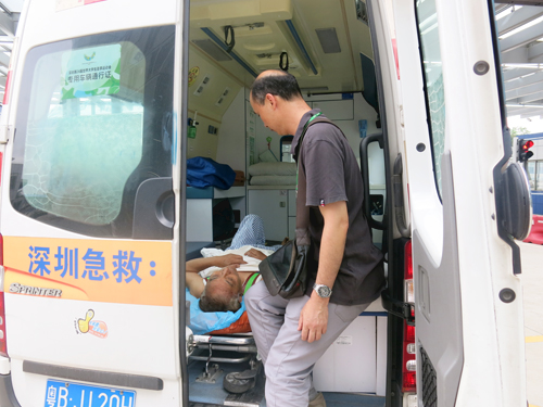 其後,在鄭伯要求下,深圳中心與醫院溝通後,由醫院派出救護車將鄭伯到關口,並由深圳中心協助過關,於當天下午回香港醫院醫治。
