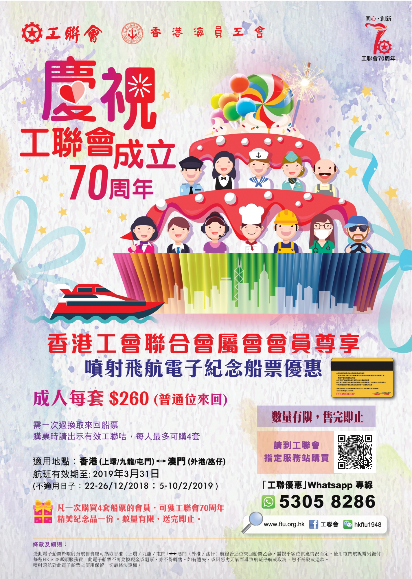 慶祝工聯會70周年——會員尊享噴射飛航電子船票優惠