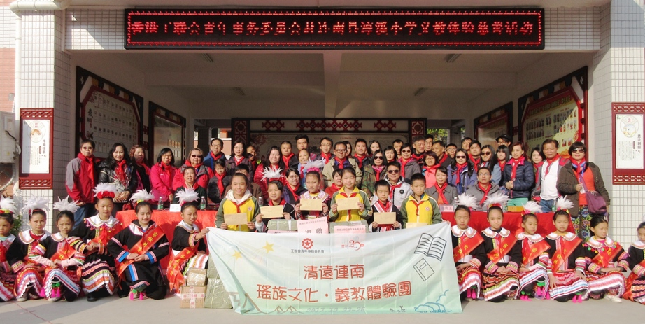 廣州工聯諮詢服務中心(廣州中心)12月23至26日協助組織暨南大學就讀的香港學生,參加由香港工會聯合會青年事務委員會和清遠市港澳事務局主辦的「清遠連南瑤族文 化·義教體驗團」活動。透過到連南縣淳溪小學義教,以及參觀當地瑤族文化及人文歷史等,擴闊香港青年的視野,加深他們對內地發展的認識,是次活動歷時四天,深受學生歡迎。